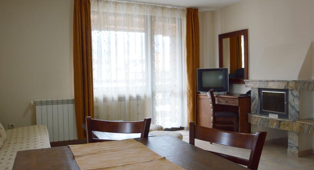 Apartment (спальня з одним двоспальним ліжком або два односпальні ліжка та хол з розкладним диваном, кухонним куточком (плита, електрочайник, столові прилади, посуд) та каміном, санвузол з ванною, окремий туалет з біде, 2 балкони, макс. 4 чол., 42 м2);