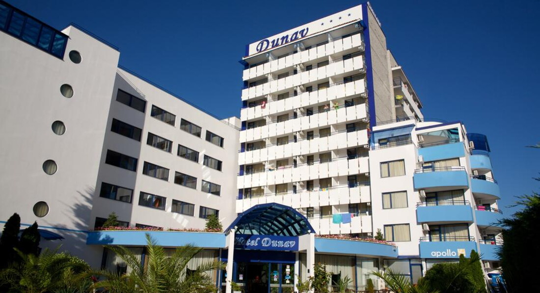Популярний готель Dunav 4* знаходиться у південній частині курорту у жвавій місцевості. Навколо багато кафе, магазинів. Складається із 2-х корпусів: 5-9 поверхові будівлі. На невеликій території є все для повноцінного комфортного відпочинку. Завдяки наявності в готелі красивого саду створюється відчуття ізоляції від активного курортного життя. Під кронами дерев природного соснового гаю можна відпочити у спекотний день. Можна пропонувати будь-яку категорію туристів.