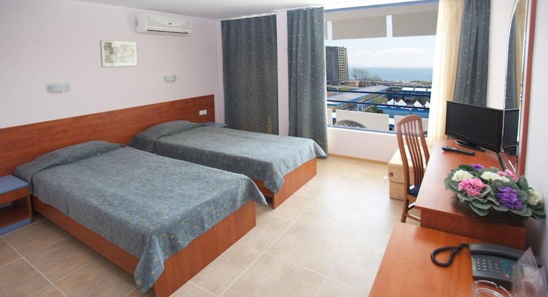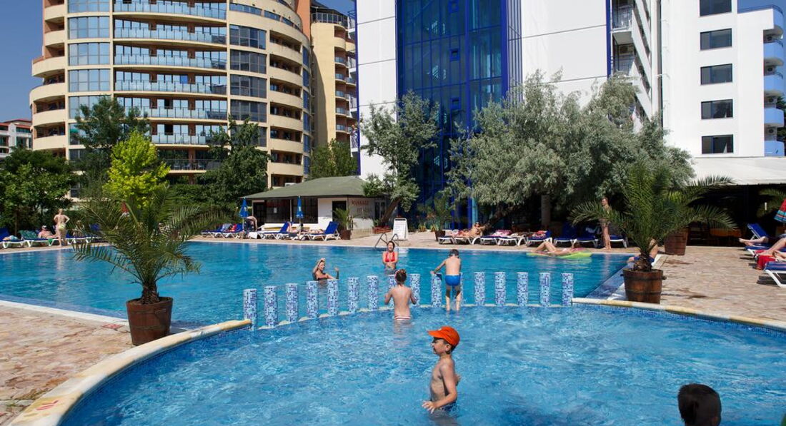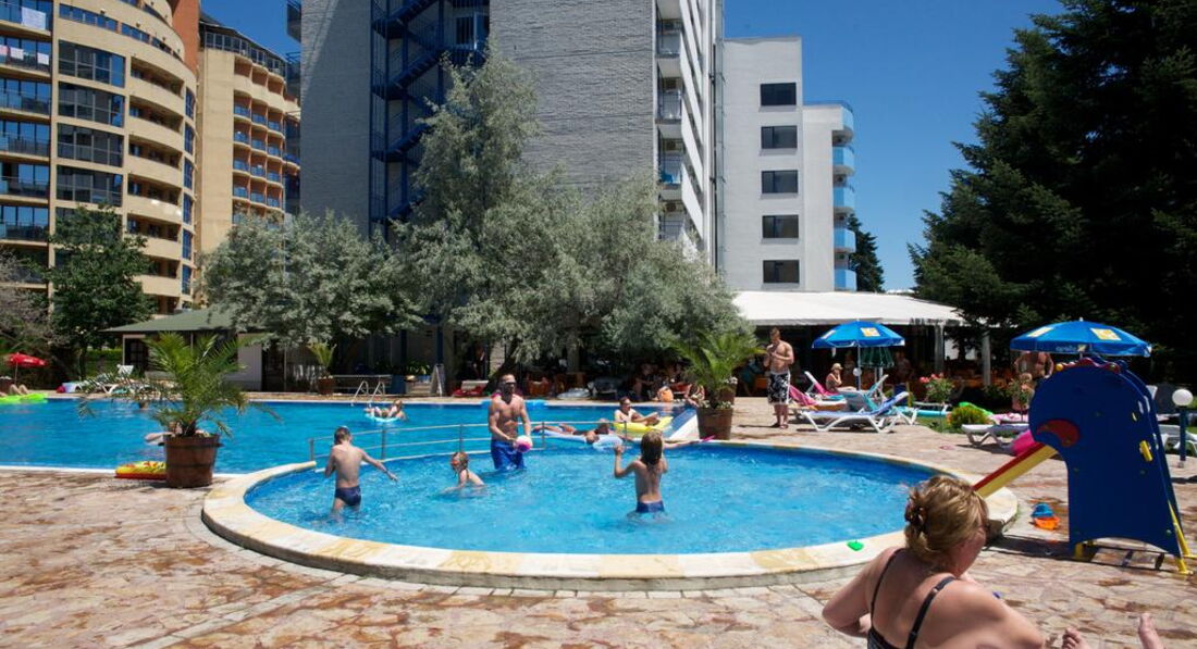 Посетили данный отель в августе 2003 с семьей (2 пожилых, 2 молодых и 2 ребенка – 6 лет и 11 месяцев). На тот момент отель был 3 звезды и цена полностью соответствовала качеству. Я думаю, что с тех пор многое поменялось в лучшую сторону, но, честно говоря, и тогда все было на уровне. Брали завтраки и ужины – еда полностью удовлетворяла. Так же было детское меню. Любые проблемы/пожелания решались сотрудниками отеля моментально. И вообще, что касается отношения болгар к русским – наверное, ни в одной стране нам не было так «душевно». Даже не знакомые люди на улице/ в кафе, узнав, что мы из России, старались максимально помочь. И все это с дружелюбными улыбками и искренней радостью. Больше мы в Болгарию не ездили, но впечатления остались на долго. Еще раз возвращаясь к питанию – обедали в кафешках поблизости. Все очень вкусно и не дорого. На экскурсии ездили на «Остров Робинзона» и в Аквапарк (самостоятельно). Остров Робинзона – это тур на баркасе (около часа) в стилизованную деревню дикарей, ну и там шоу. Не цирк Дю Солей, но весело и взрослым и детям (особенно под вино и ракию)). Аквапарк тоже очень понравился, все очень интересно оформлено – слоны, крокодилы и т.п. Есть интересные горки. По отелю – минус один…Лично для меня было далеко ходить на пляж…Но это субъективно. Так что резюмирую – отель прекрасно подойдет для семьи с детьми