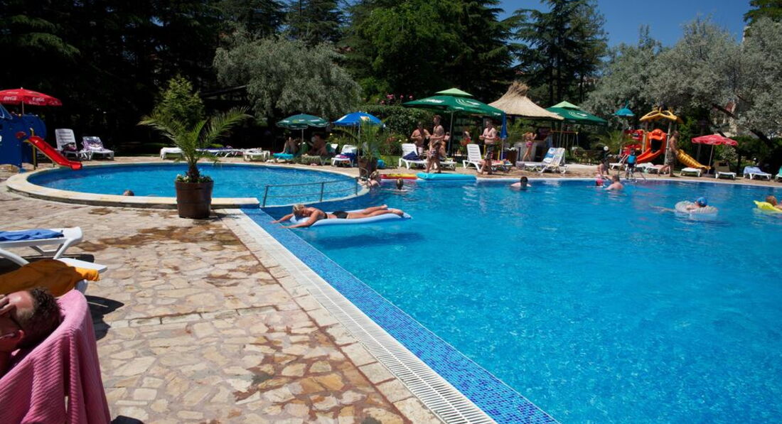 Отличный отель! Просто потрясающий сервис!!! Девочки на ресепшене - королевы бала!!! Спасибо огромное за самое оперативное заселение в моем опыте путешествий!!!! Немного лентяйничала горничная, но стоило мне попросить на ресепшене тряпку, чтобы после коляски вытирать песок в коридоре, как и горничная стала убираться на 5+. Еда... Это что-то с чем-то!!! До сих пор вспоминаю копченую утку в апельсиновом соусе!!!! Ням-ням-ням!!! А кисло млеко!!!!! Для детей отличный массаж, детская площадка и супер доброжелательный персонал, который бросался успокаивать моего 11 мес. сына и носил его на руках!!! Вокруг - сосны, воздух чудесный. Пляж с белым мелким-мелким песком, который ежедневно очищает трактор с ситом. Вход в мор пологий, даже в шторм было удобно. Глубина маленькая, для детей - самое оно. Если поеду еще раз в Болгарию, то только в Дунав!!!!