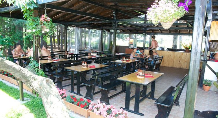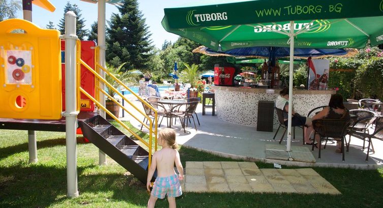 Отдыхать в этом отеле очень понравилось, кормили хорошо, персонал приветливый. Помимо завтрака, обеда и ужина можно было в течение дня заказывать пиццу, спагетти, мороженое разных видов. Пляж недалеко, единственное, там платные лежаки и зонтики - 7левов, то есть 140 рэ один зонт и стул на весь день. Но мы загорали подальше от моря, на песочке и ни чуть не обломались. Единственное, что омрачило наш отдых, это последняя экскурсия - сафари. Мы заказали ее в отеле у нашего гида, ее зовут Веселина, нам обещали открытые джипы, экстримальный отдых, и даже возможность самим управлять этим авто, при наличии прав, разумеется. Действительность оказалась просто ужасной! Приехал самый обычный ниссан, джип конечно, но закрытый, и старый в нем даже кондея не было! и нам предложили сесть в "багажник", мы сказали, что не поедем, стали звонить гиду, выяснять недоразумение, в этот момент водитель выхватил у нас квиток об олате экскурсии и заявил, что мы либо едем, либо нам ничего не вернут! А стоила эта экскурсия 50 евро с человека! При этом, кроме джипа, было полно недостатков, за 50 евро нам показали водопад, не спорю, это единственное зрелище за всю экскурсию, а потом нас привезли к речушке по колено, раздали по бутерброду и объявили пикник! И это за 50 евро! Мы могли лучше на вертолете всю Болгарию облететь! Вобщем не советую обращаться к этому гиду, она обманщица чистой воды, ради выгоды засунет Вас лижь бы куда!