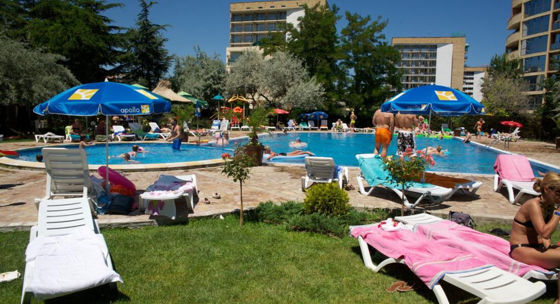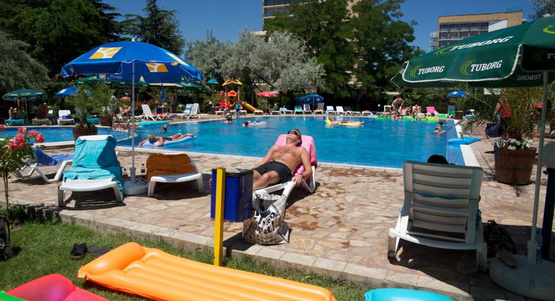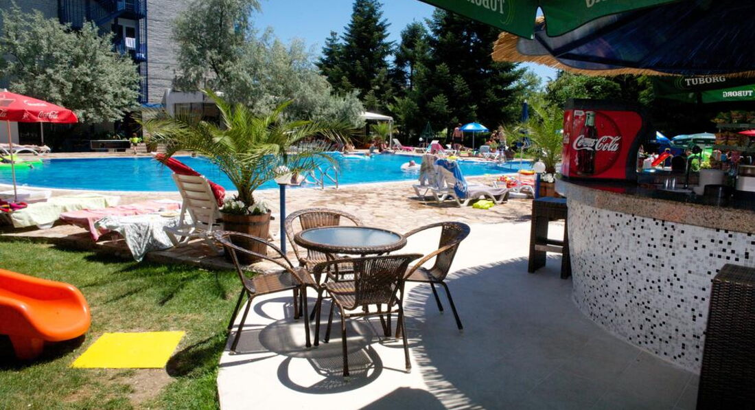 Деньги на дополнительную еду в рестаранчиках и магазинах не тратятся. Еда очень разнообразная. Больше всего понравились пироженые. Местный алкоголь очень хороший. Если хотите выпить какой-нибудь коктейль из болгарского алкоголя, то лучше обратитесь к кому-нибудь из персонала в красной одежде в ресторане... Лично мне понравился коктейль из ракии и ментоловой настойки (не сильный). Самые лучшие номера находятся в новой части отеля, т. е. где 4 этажа. Там они просторнее, душевая отделяется от всего санузла шторкой, есть фен там же. Лучше с собой взять веревку, чтобы привязать на болконе, т.к. сушить белье негде, кроме как на перилах балкона. Уборка номеров ежедневная. Главное не забывайте оставлять 2 евро на углу кравати для уборщицы, иначе ваш номер не станут убирать. Очень удобное расположение бассейна - за отелем. Территория отделена от дороги небольшим леском, поэтому шума от нее нет. Минусы: маленький бассейн и мало лежаков. Где-то с 5 утра немцы, шведы и др. занимали лежаки, поэтому русским не всегда удавалось полежать у бассейна. А вообще лучше ходите на море, там почти одни русские загарают, т.к. иностранцы сидят у бассейнов и "надуваются" бесплатным пивом целый день.