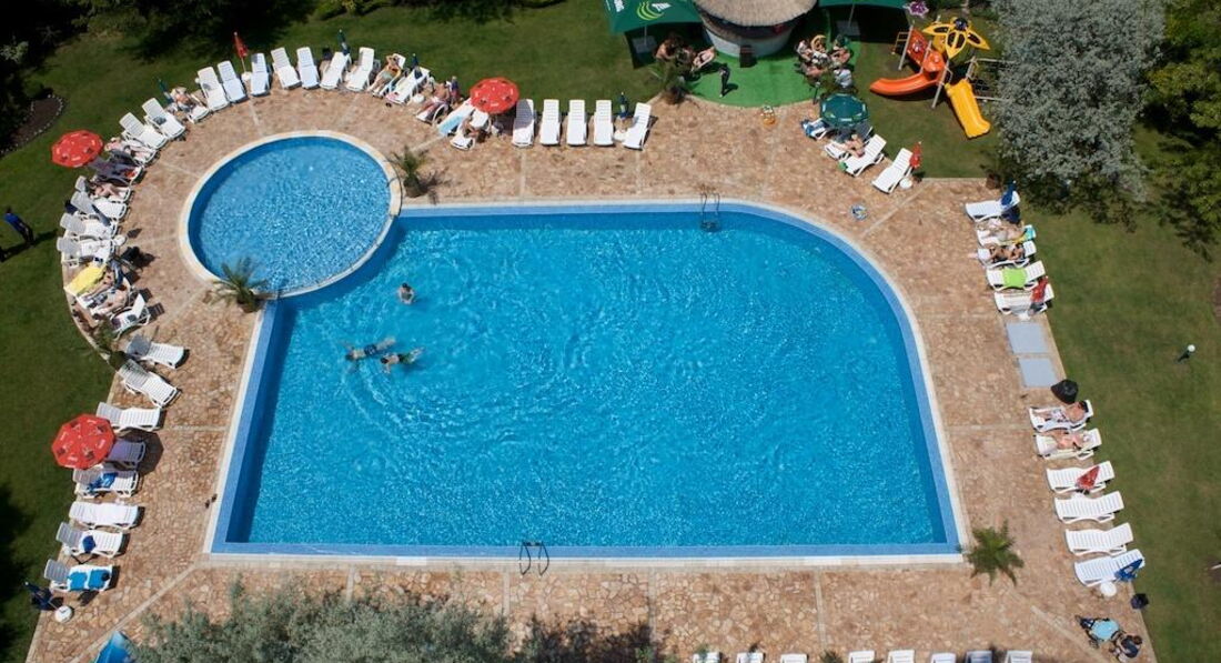 Отдыхали семьёй в данном отеле: я, муж, сын 10лет, сын 1год 5мес. Для отдыха с малышом отель, в целом, подходит: есть детские площадки, бассейн для малышей, из меню можно что-то выбрать. Особенно в этот период оч много спелых фруктов. Вода питьевая есть везде, мы даже сок давали. А вот для старшего не хватало анимации. Но он у нас общительный, нашёл, чем заняться. Номер наш был с торца здания (5-ти этажного). Иногда вечером под окнами собирался персонал, но они особо не мешали. Из окна было немного видно море. Так как малыш около десяти укладывался спать, и только потом мы могли расслабиться, хотелось бы "всё включено", но оно до 22.00. Поэтому пришлось тратиться в магазине. НО, это не главное). В течение дня система "всё включено" себя полностью оправдывает: еды, напитков, закусок и мороженого - море! Каждый вечер в "ресторанчике" возле бассейна жарили рыбу на гриле, что очень радовало. Выбор мяса был оч велик и разнообразен. До моря минут 7. Не спешите оставаться на первом же пляже. Походите, сравните. Мы за 3 дня до отъезда нашли пляж, где вся зона без лежаков, и людей там оч мало. Жаль, что поздно. На этот пляж заходить у отеля "Лангоза" (от нас по направлению к Несеберу) . В целом, отдых удался. Единственное, хотелось бы музыку у бассейна и какого-то "движения" в отеле. Вроде всё, если что, задавайте вопросы.