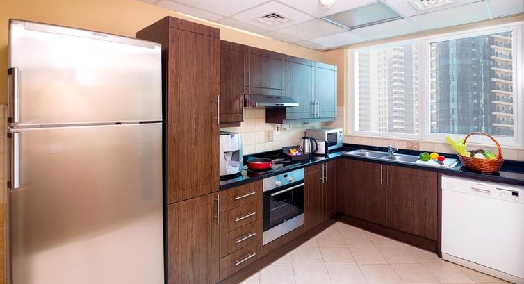 Апарт-отель расположен в престижном районе Марина-Дубай. Очень красивый вид на марину и пешеходную набережную вдоль канала.Вокруг масса кафе и ресторанов,где можно поесть,а кое-где даже и выпить.У нас был номер с одной спальней на 21 этаже.Большая гостиная, два телевизора,стереосистема,полностью оборудованная кухня со всей посудой и утварью.Сейф.Две туалетные комнаты.Большие окна в комнатах.Убирают каждый день.Без нареканий.Персонал вежливый и доброжелательный,но не говорят по-русски.Есть Wi-Fi.Теперь немного о минусах.Нет русских каналов на ТВ.Район не достроен.То тут,то там возводятся новые здания,на набережной тоже стройка,где-то переделывают тротуар,где-то сажают пальмы,где-то еще что-то.Прямо рядом с отелем строится высотка.Долбежка отбойного молотка начинается часов в семь и проникает даже на верхние этажи.Стекла настолько грязные,что портят весь вид.Но мыть видимо нет смысла из-за этой непрекращающейся повсеместной стройки.Из-за этой стройки рядом с апарт-отелем очень неудобный выход к цивилизации.Приходится делать массу ненужных маневров.Район дорогостоящий и поэтому при текущем соотношении цена-качество отель можно выбрать.Метро,если кому нужно,тоже недалеко...так же как и продуктовые магазинчики.До торгового центра Дубай Марина Молл минут 15 быстрым шагом.Или две остановки на водном трамвае.Или 5 минут на такси.)))