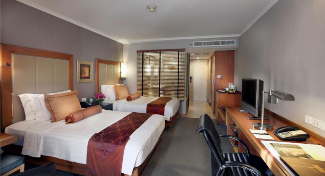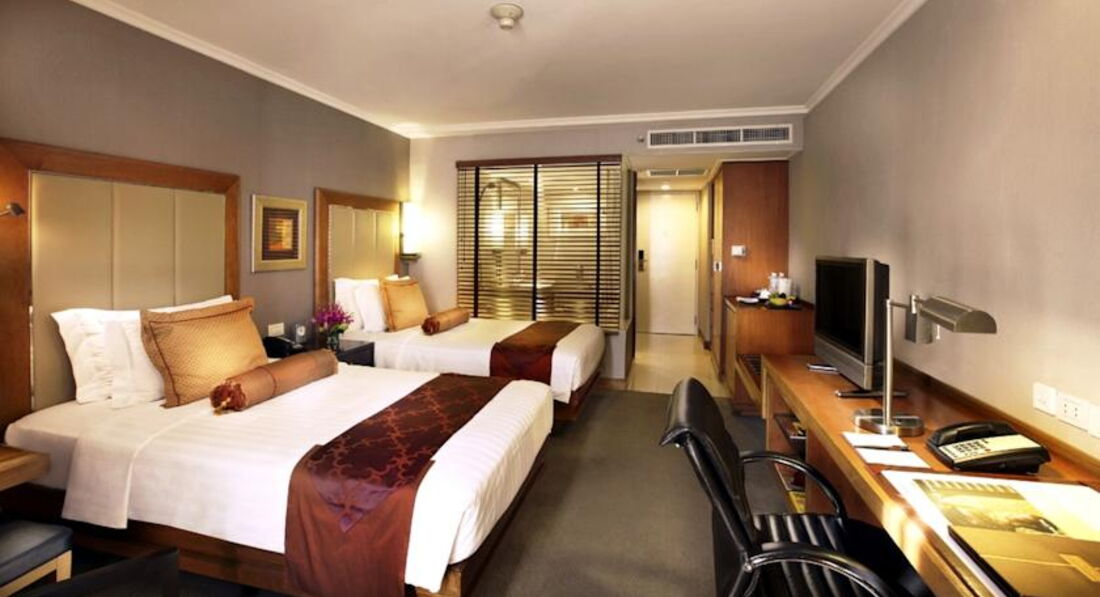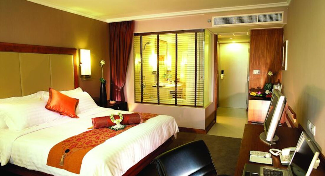 В отеле останавливалась два раза.2007 и 2008 годах.Прекрасный отель в деловом районе.Напротив отеля парк Люмпин,недалеко находится знаменитый отель Байек Скай(Baiyoke Sky ) и не менее знаменитый рынок рядом с байком).Также близко остановки транспорта ,метро и электрички.В отеле только завтракала,вполне достойно.Рекомендую отель,стоит только учитывать официальную обстановку)