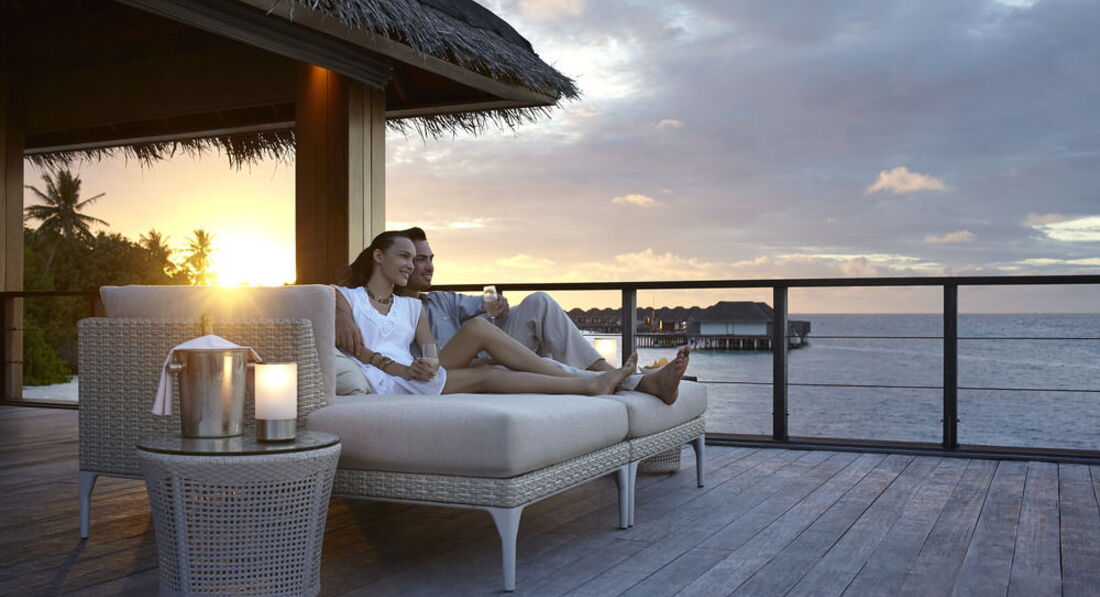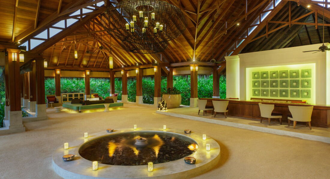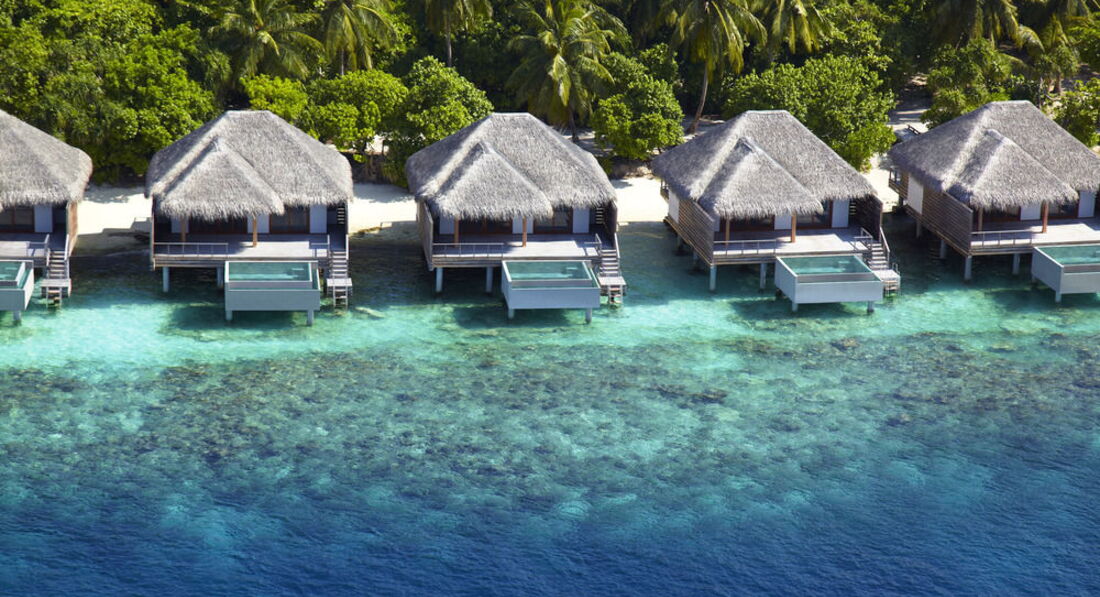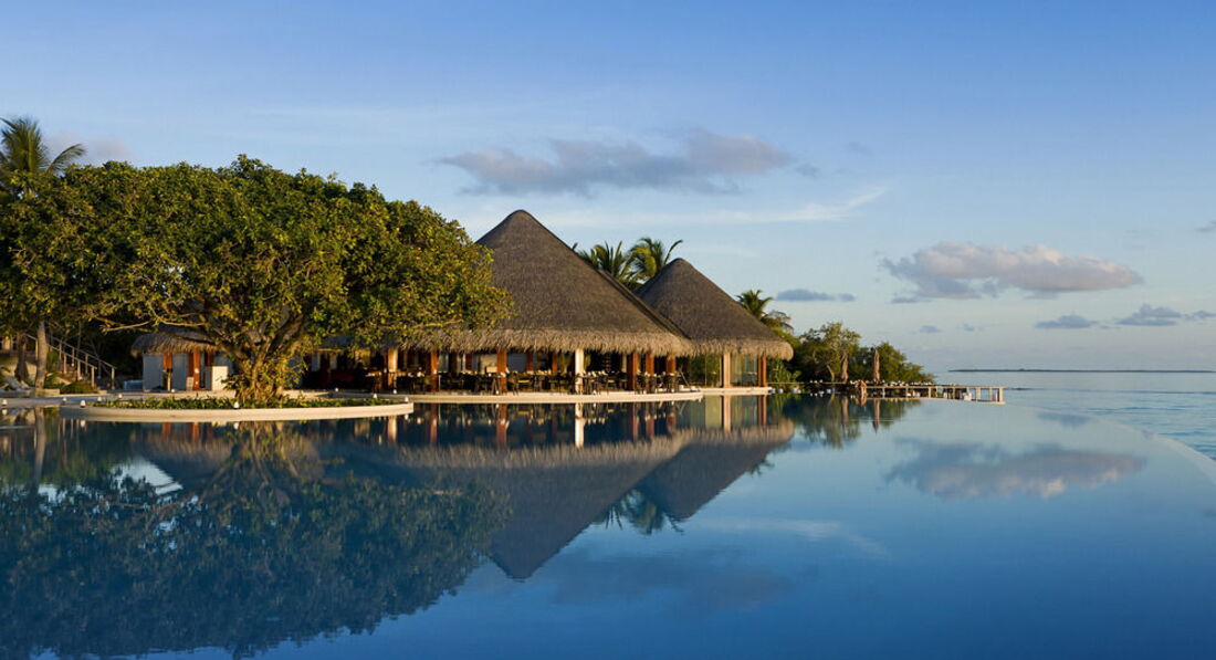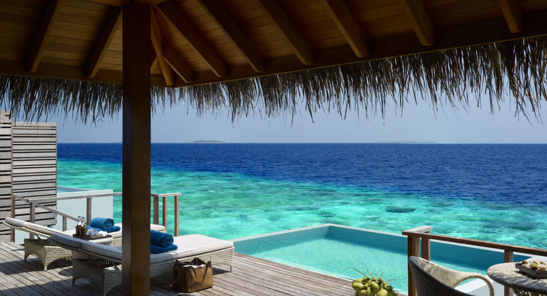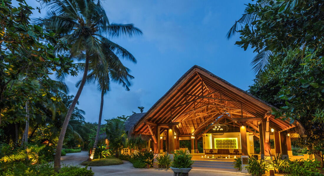 Спустя год, но все таки напишу. Ездили в этот отель в свадебное путешествие. Цены на отель прямо таки скажем кусаются, но они полностью оправданы. Перелет Аэрофлотом мне очень понравился, летели ночь, спали, поэтому полет был нормальный. По прилету в Мале около 2-3 часов ожидали посадку на гидросамолет, в комфортабельной комнатке принадлежавшей отелю, чтобы добраться до острова-отеля. Полет на гидросамолете это очень захватывающе, 30 минут полета пролетели как 5 минут. Гидросамолет приземляется у пантона в океане, далее вас забирает катер и подвозит к острову. На берегу встречает обслуживающий персонал и лично менеджер отеля с холодными полотенцами и напитком. Проходите на ресепшен заполняете бумажки, оттуда на электрокаре с багажом вас отвозит ваш личный дворецкой (батлер) к вашему домику.