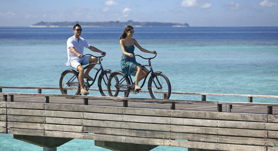 Впервые добирались до отеля с попутчиками из других отелей. Надо признать это муторно,взлетать и садится по три раза за 1,5 часа,ждать катер в открытом океане при сильной качке в душном сиплане. Наш отель был последнем ,поэтому нам приходилось все это терпеть. Первое впечатление об острове и отеле были какими то смазанными, первые дни он мне действительно не нравился! Потом я поняла,что же так сильно влияло на мое настроение...это дождь и отсутствие солнца. Мир просто перевернулся,когда появилось солнце. Все заиграло яркими красками,я даже помню тот момент в океане!! Вот такое предисловие)). Теперь только факты с + и -). Номер у нас был самый простой, без личного бассейна но со всем,что положено отелю 5* . Сразу при заселении к нам прикрепили личного батлера, но с просьбами мы больше обращались к русскоязычной девушке....имя забыла,прости,дорогая)). Риф- надо сказать так себе,ничего интересного. Правда есть экскурсии на мант, знакомые из Белоруссии ездили ,после писали,что было круто. Питание не плохое,я просто обожаю тайскую кухню ,поэтому могла три раза в день питаться в тайском ресторане. Вообще есть ещё рестораны с европейской едой и бар у бассейна . В отеле за каждым бунгало закреплены велосипеды,но их постоянно путают и теряют. Особенно это свойственно китайцам, которых 80% ,брать без спроса , там где увидят. Управляющий отелем,очень услужливый и внимательный,как и весь персонал. Остров большой,даже есть остановки для шатлбассов. На отров приплывают черепахи откладывать яйца,сотрудники отеля их собирают,ждут когда вылупятся и окрепнут ,а потом снова отпускают в океан. Очень забавное шоу получается. На мое день рождение испекли торт,пели поздравительную песню всем составом ресторана, было очень мило. Ходили с мужем в СПА, ничего особенного,цены приличные.Ещё впервые видела на улице ледогенераторы,можно прийти с ведерком и самим набрать. ....отзыв пишу по прошествии года, пытаюсь вспомнить какие то (-), а не вспоминаются))). Наверное (+) было больше.
