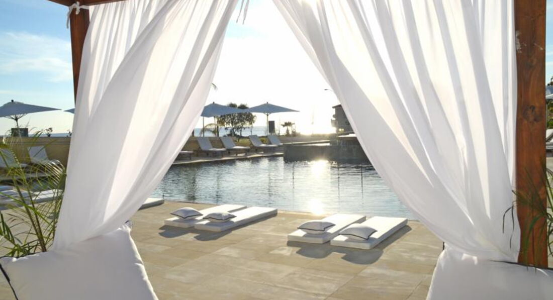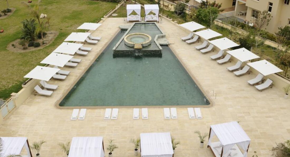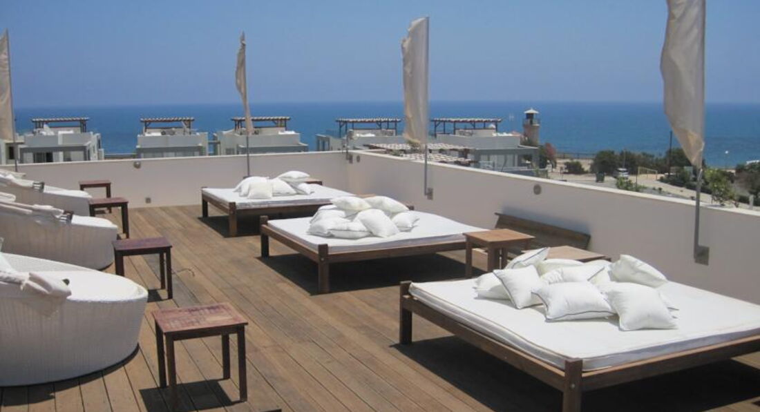 Экологически чистый отель от мебели до еды. Располагается в близлежащей деревне от города Ларнака ( до центра Ларнаки 15 мин. езды). Отель относительно новый, стильный модный дизайн. Просторные светлые номера, номера категории делюкс имеют вид на моря. В 2 мин. ходьбы от отеля каменистый пляж, в 7-10 мин. песчаный пляж. Так же имеется легкая ненавязчивая анимация, как для взрослых так и для детей.