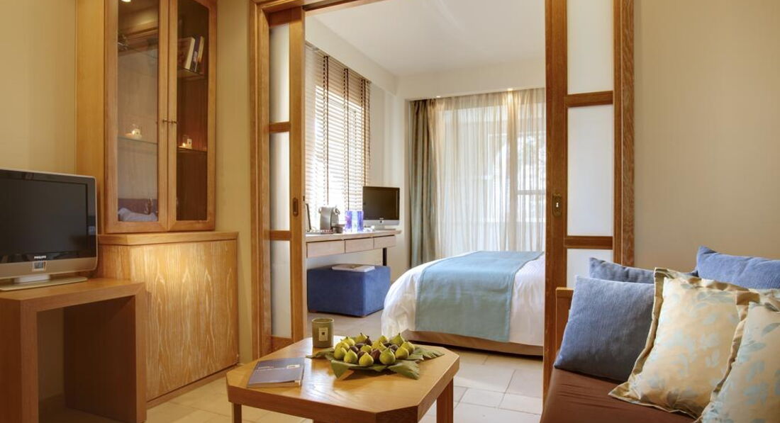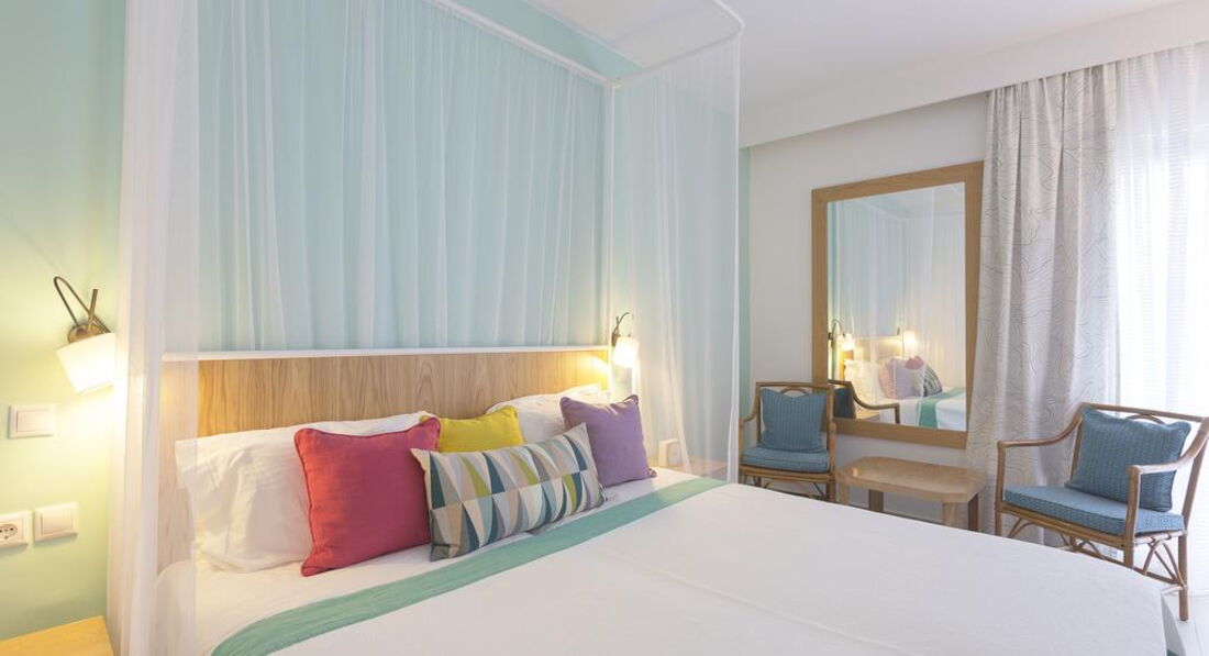 Типи номерів: standard room (осн. ліжко – двоспальне, макс. 2 чол., 25 м2); superior room gv (вид на сад, осн. ліжко – двоспальне, макс. 2+1 чол., 25 м2); superior room sv (вид на море, осн. ліжко – двоспальне, макс. 2+1 чол., 25м2); juniorsuitesv (вид на море, однокімнатний номер, осн. ліжко – двоспальне, дод. – софа, макс. 3+1 чол., 40 м2); junior suite seafront sv (спальня з вітальнею, осн. ліжко – двоспальне, дод. – софа, макс. 3+1 чол., 45 м2); junior suite seafront jacuzzi (вид на море, спальня з вітальнею, осн. ліжко – двоспальне, макс. 2 чол., 45 м2); familysuitegv (вид на сад, спальня та вітальня з розсувними дверима, осн. ліжко – двоспальне, дод. – софа, макс. 3+1 чол., 40 м2); grandsuiteprivatepool (2 спальні, одна зі спалень з вітальнею зоною, осн. ліжко – двоспальне, дод. – 2 односпальні, індивідуальний басейн, макс. 4 чол., 170 м2); suite private pool (одна або 2 спальні, окрема вітальня, 2 ванні кімнати, індивідуальний басейн, макс. 3+1 чол., 80-100 м2); suite main building (спальня та вітальня, дод. - Софа, макс. 3 +1 чол., 55 м2); suite 2 bedroom sv (вид на море, 2 спальні, макс. 4 чол., 38-55 м2); grand suite privatepool sea front (спальня, окрема вітальня, індивідуальний басейн, макс. 4 чол., 150м2);Номери розташовані в зоні бунгало: bungalow gv (вид на сад, осн. ліжко – двоспальне, дод. – софа, макс. 2+1 чол., 50 м2); bungalowsf (прийом вид на море, осн. ліжко – двоспальне, дод. – софа, макс. 2+1 чол., 50 м2); bungalowsv (вид на море, осн. ліжко – двоспальне, дод. – софа, макс. 2+1 чол., 50 м2); bungalow sea view private pool (вид на море, осн. ліжко – двоспальне, дод. – софа, макс. 2+1 чол., 50 м2); presidential bung. maria cala (2 спальні, вітальня, 2 ванні кімнати, індивідуальний басейн, макс. 3+1 чол., 180 м2); bungalow 2 bedr. priv. pool sv (2 спальні, індивідуальний басейн, макс. 3+1 чол., 70 м2)