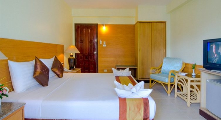 отдыхали в апреле 2016 года в троем с подругой и дочь 6 лет,очень насторожили отзывы про бары,шум и невозможность спать-запаслись берушами,но даже не воспользовались не разу.да музыка имеет место быть,но никто из нас не испытывал сложностей со сном по этому поводу,при этом за время проживания сменили 3 номер разных расположений и даже последний на 2м этаже на стороне самих баров абсолютно нормально было.почему сменили 3 номера-сначало заселили и чего-то не охлаждал кондер,далее переселились в след.номер потому как заехали индусы и настойчиво преследовали подругу,увидев в каком номере мы живем(не приятные личности)вода была горячая,порой даже очень,хотелось прохладней,а не было.под конец отключали вообще на пару часов(было связано с разгаром НГ в Тайланде).Отель не новый,мебель,если кто желает идеальных апартаментов,то вам не сюда,однозначно,но вполне все приемлемо.Был у нас опыт общения с кузей)дада он самый,да такой большой см 15 прям в номере,но надо быть готовым-это не избежно и даже в отелях 4* ну и на улице тоже можно их встретить.полотенца меняли каждый день,воду ставили тоже,постель мож пару раз поменяли.завтраки нормальные:сосиски,ветчина,яичница,огурцы,капуста,помидоры,перец болгарский,из фруктов только арбуз,лапша,рис,овощи тушеные,булочки,чай,кофе,соки,тостеры.если уезжаете с утра на экскурсию рано необходимо заказывать ланчбокс(не могу сказать,что в него входит,не удалось отведать) накануне до 15 часов,завтраки вообще с 7 до 11 утра.пляж и море вполне нормальные,ходили утром,даже порой вода была прозрачная.персонал по-русски не понимает,вай-фай доступен на ресепшен или на каждом этаже около лифта бесплатно(если номер будет у лифта,то есть вероятность,что будет ловить и в номере),скорость оставляла желать лучшего порой.бассейн с очень теплой водой,лежаков мож 8-10,бар не работает на бассейне.Так что ничего особо критичного нет,все обычно и стандартно.