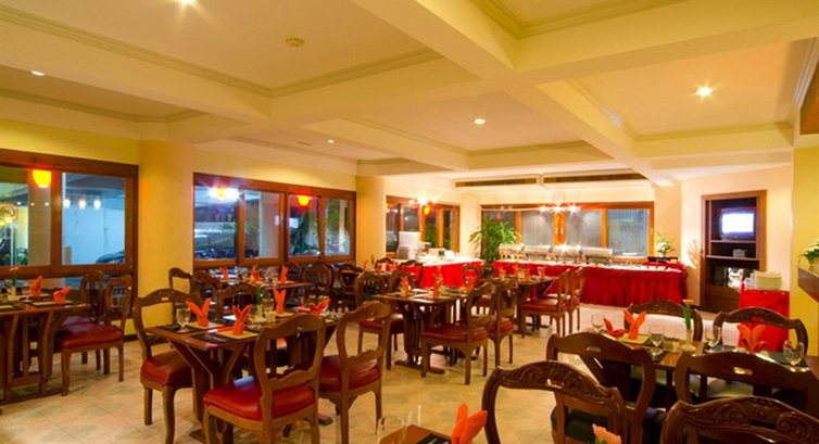 Питание вполне соответствует звездам:кофе(нормальный),чай(Г-но),молоко,2 вида сока(на 3 с плюсом),2-3 вида печенюшек,хлопья,тостерный хлеб (полное Г.,но в Тае весь пшеничный хлеб-Г.),бананы,ананасы,арбузы; свежие - огурцы,помидоры,капуста,морковь и еще какая-то зелень.Яичница,сосиски,ветчина,рис и фасоль(скорее всего консервированная) - все это каждый день.Помимо этого 3 вида горячего - курица,свинина,рис ,рисовая вермишель и различные овощи(в т.ч. и картошка) - в разных комбинациях менялись каждый день.Может не слишком разнообразно,но мне хватало и все свежее.Завтрак с 7 до 11,затем работает как обычное кафе,но я только завтракал,оценить не могу.