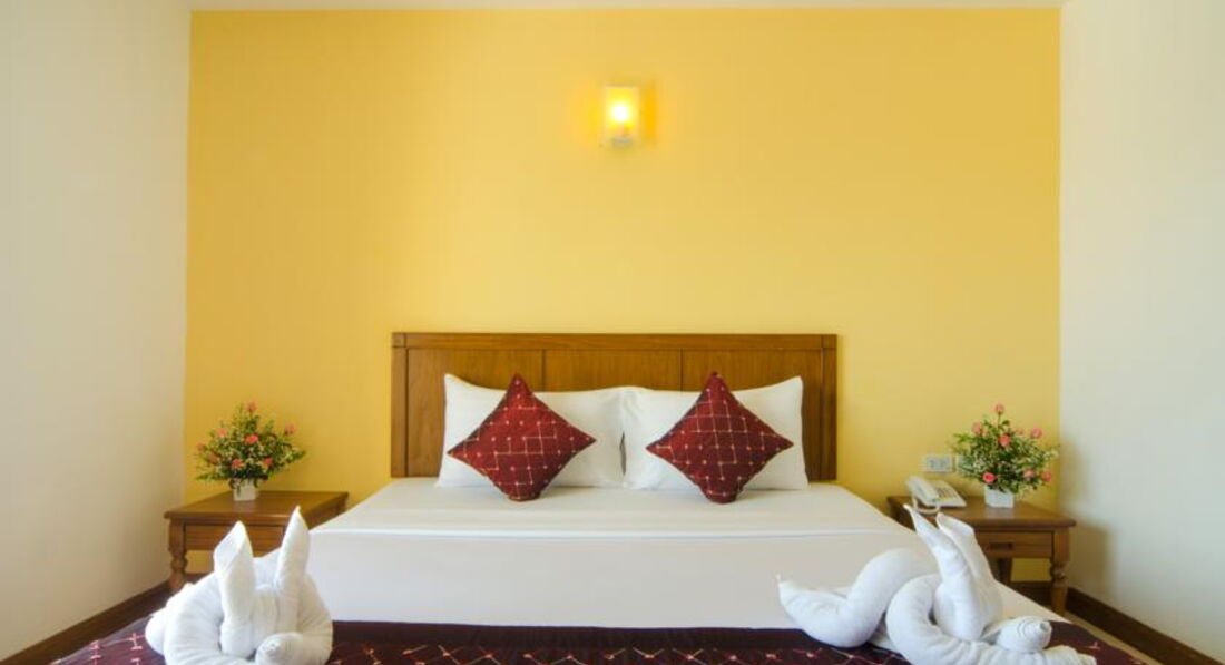 Были в Таиланде с мужем в первый раз. Отель выбирали поближе к центру и развлечениям. При заселении денег не давали(решили действовать по обстоятельствам), номер дали на 3 этаже(вид на хоз.постройки), зато с противоположной стороны улицы(где расположены бары и кафе, и музыка орет до 3 ночи). Т.к. отель предназначался только для ночлега нас все устроило. При заселении обнаружили, что откручен болт у замка, сообщили об этом на ресепшен, там обещали через "тен минетс" все исправить, но никто так и не пришел, вечером опять попросили отремонтировать замок, но они только кивали головами(мол сейчас все исправим), но никто так и не появился. Мы, в принципе, согласны были жить и с таким замком, просто боялись, что при выселении сломанный замок свалят на нас. Уже на следующее утро на встрече с гидом мы повторили просьбу, и к нашему приходу (минут через 20) после встречи с гидом все было отремонтировано. По поводу уборки: мы на целый день вешали табличку не беспокоить, просто просили поменять полотенца и лишь два раза лично просили убрать комнату, уборщице давала доллар.Комнату убирали плохо(оставались волосы на полу, на балкон она даже не заходила, о чем свидетельствовала полная пепельница). По поводу завтраков- в 7 часов можно застать:хлопья с молоком , яичница(жарят при тебе),картошка фри, рис, сосиски,бекон, огурцы, помидоры, листья салата, тосты, джем. Из фруктов: всегда арбуз, бананы, ананасы, была 2 раза паппая. Бывало, что приходили к 9-10 утра и почти ничего не оставалось(фрукты они докладывают).Лично я брала только яичницу и овощи с фруктами. Бассейн находится на 3 этаже и работает с 9 утра до 7 вечера(хотелось поплавать вечерком, но.....дверь закрывают). Из плюсов-бесплатный интернет в холле, бесплатный сейф на ресепшене(ничего не пропадало). У отеля удобное расположение(между 1 и 2 линией), до тук-туков пол минуты.Рядом аптека и продовольственный магазинчик . До фестиваля 5 мин.пешком. Рядом есть фруктовый рынок и дешовая кафешка. Повторюсь, что напротив находятся бары, следовательно орет музыка, крики, смех. Но мы после насыщенно проведенного дня просто вырубались, и это нам не мешало. В общем отель находится в "центе жизни" :-). Оценка в целом-"3" (как ,в принципе,отель сам себя и оценивает)