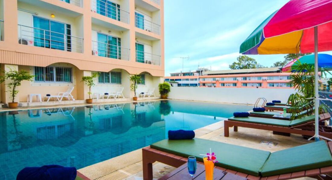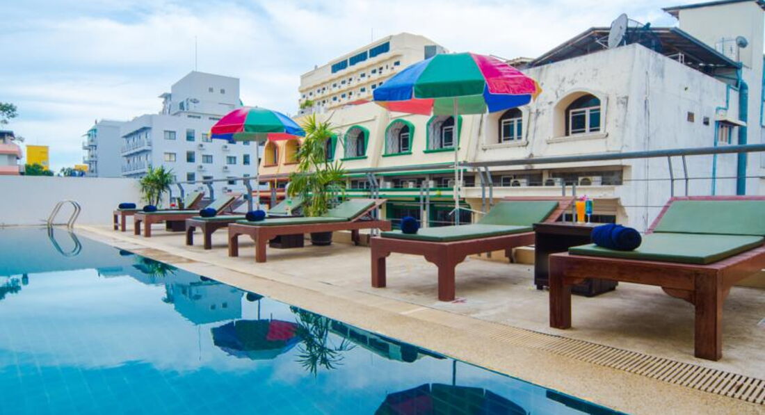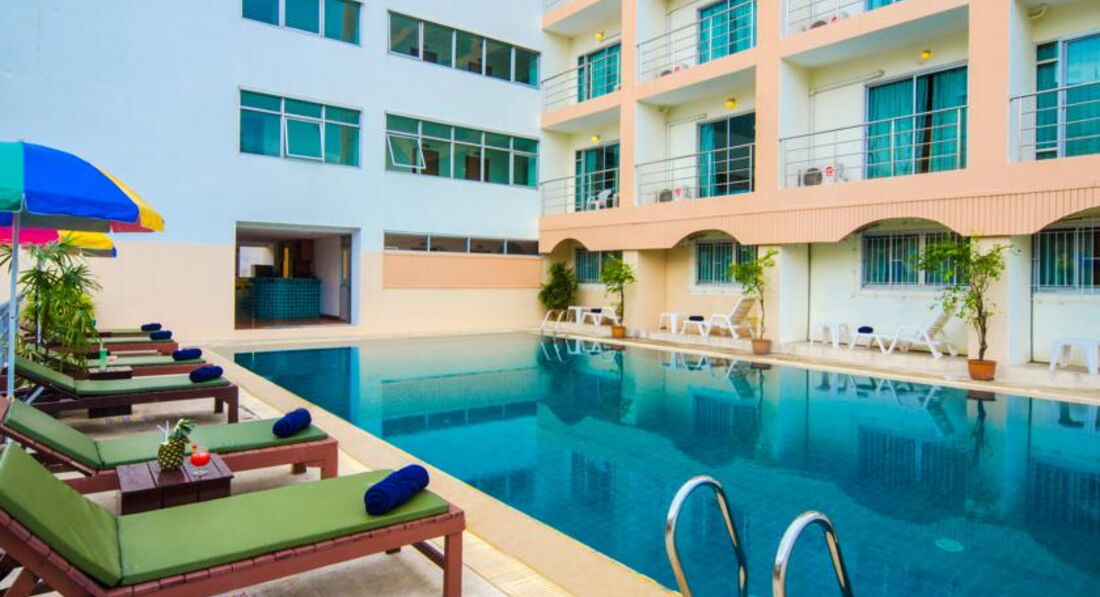 Доброго времени суток. В Таиланде второй раз. В общем отель не разочаровал. Путевку купили за 5 часов до вылета, так что особого времени выбирать и не было. Да и цена определенно понравилась. 44 т.р. на две неделе на двоих да еще и в Новый Год. Конечно 1 января лететь домой не очень комфортно, но терпимо))). Контингент постояльцев в основной массе иностранцы. В этот раз порадовало отсутствие граждан Китая. Очень уж шумный народ. Преимущественно пожилые англоговорящие мужчины с тайками. Насекомых и другой живности замечено не было. Депозит при заселении не просили. Питьевая вода платная. Что касается завтрака то он стандартный. Пару тайских блюд. Суп и тушеные овощи с мясом. Рис, сосиски, ветчина, яйца. Из фруктов арбуз, ананас, бананы, раза три была папайя. Очень вкусная выпечка. Из напитков чай, кофе плюс два вида сока апельсин и ананас. Все съедобно. Большой минус этого отеля так же как и плюс это месторасположение. Находится между Пляжной и Второй улицей в непосредственной близости от Центральной ул. Кому интересно более точное место можете посмотреть на Google. Жили в 505 номере. Балкон выходил на Центральную ул. По вечерам очень шумно. Музыка, крики, смех. С 25 декабря началась массированная атака салютами, петардами и бомбочками. Продолжалась в плоть до 1 января))) С детьми ехать точно не рекомендую. И сам если судьба еще раз забросит в Тай,в него точно не поеду.