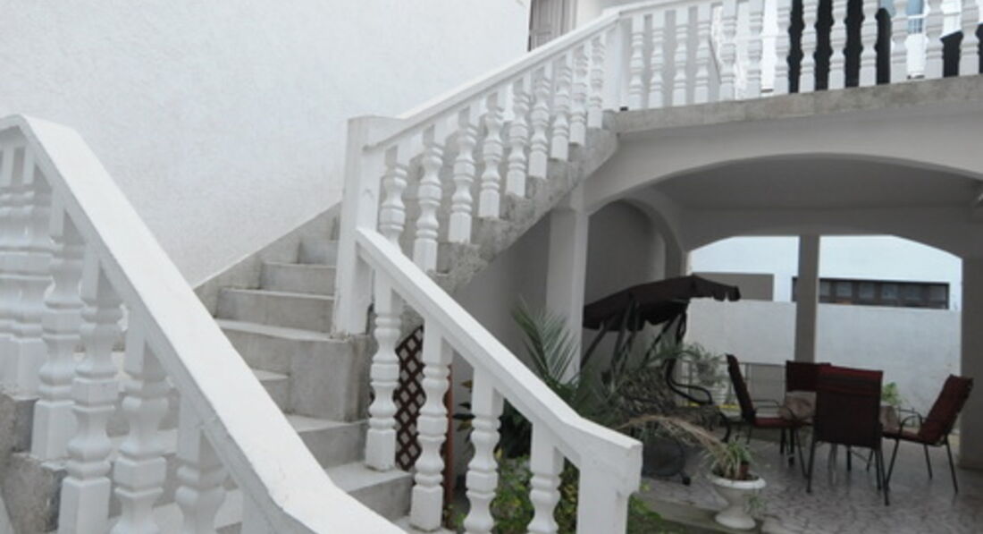 Будинок розташований у тихому районі м. Будва. Поруч із віллою розташовано безліч магазинів, ресторанів та кафе.