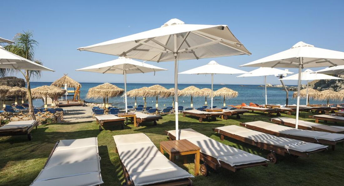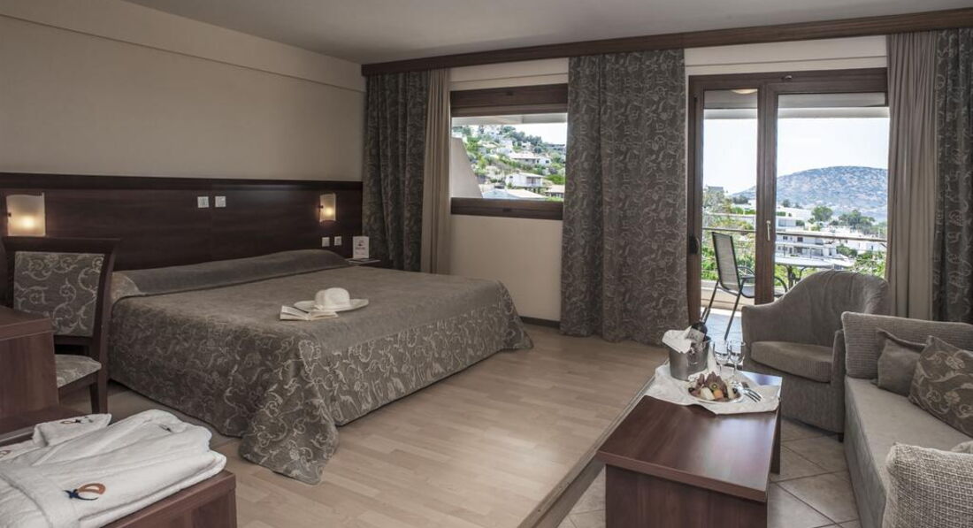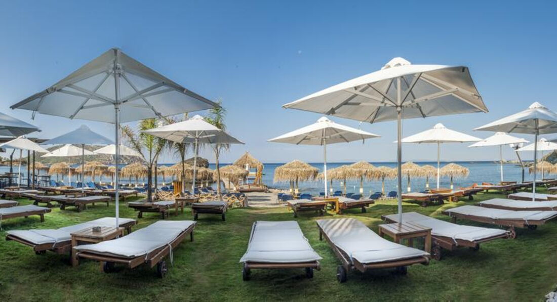 Сучасний курортний комплекс збудований у традиційному грецькому острівному стилі. Його оточують пишні сади, що ведуть до білих піщаних пляжів. Ізольована затока готелю Eden Βeach сім років поспіль відзначається "Блакитним прапором" ЄС за чистоту та розвинену берегову інфраструктуру. 2004 року готель був офіційним місцем розміщення гостей Олімпіади. Комфортабельні номери, ресторан, бар. басейн, конференц-послуги, дитячий клуб, сервіс високого класу. Ідеальне місце для охочих відпочити та ознайомитись з визначними пам'ятками столиці Греції, а також для корпоративного відпочинку.