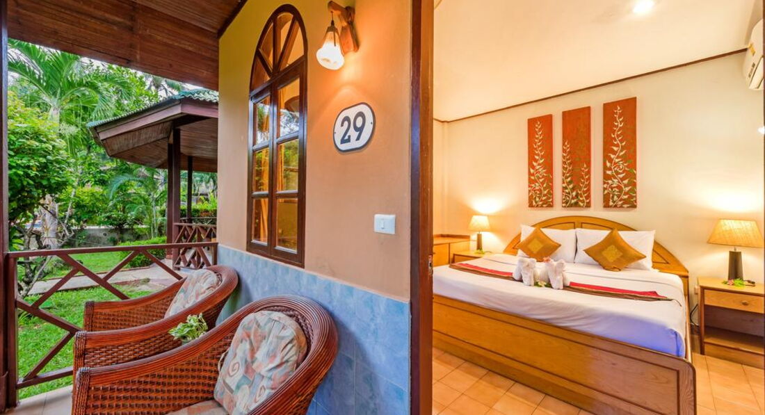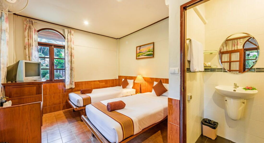 • Grand deluxe garden view (46-58 кв.м., макс. 3 дорослих + дитина) – спальня (dbl bed/twin beds), ванна кімната, вікно з видом на сад, номери розташовані в дод. корпусі