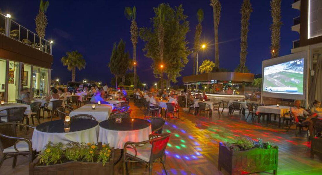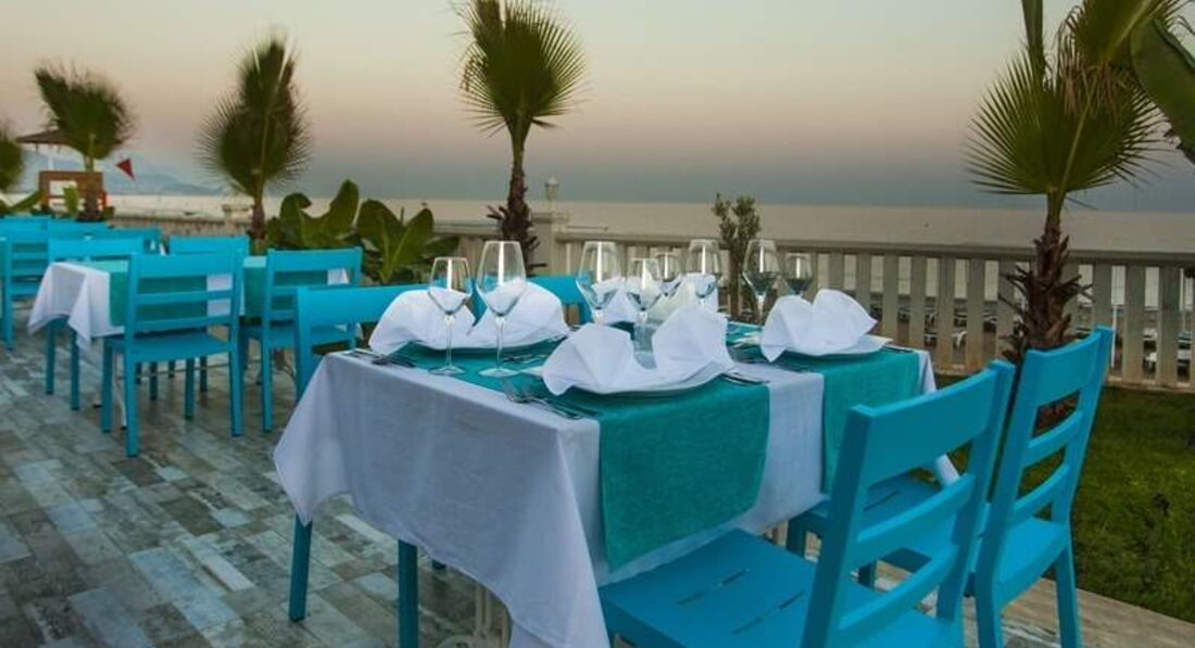 Бари та ресторани: головний ресторан розрахований на 450 осіб (критий, літня тераса, дитячі стільці); бар на пляжі (08:00-19:00, платно), лобі-бар (08:00-01:30), бар біля басейну (08:00-18:00, платно). Ресторан A la Carte – платно за попередньою резервацією.