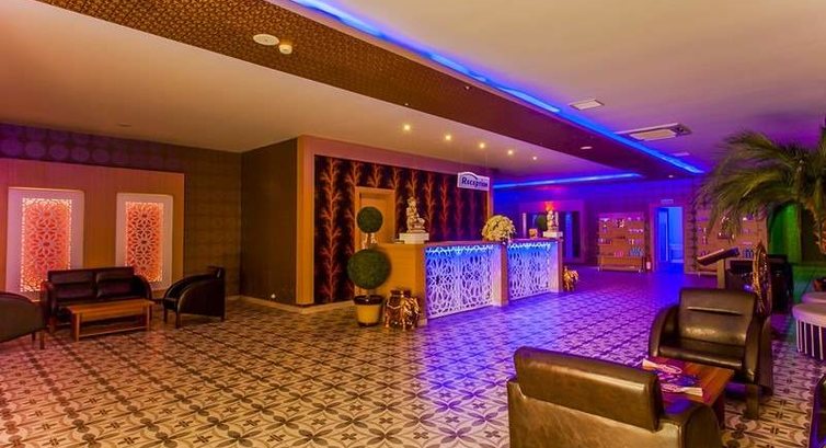 Ресепшен производит впечатление . Высокие стеклянные потолки, оранжерейная зелень, кресла с высокой спинкой новые, как троны. Розовые, фиолетово-сиреневые... Анимации отличная, у бассейна постоянно игры, мероприятия. помещение СПА... на прямоугольной территории коридор буквой п, с комнатами по обоим сторонам. в комнате отдыха посередине пальма, по сторонам кроватки с балдахинами из кружева! В полутемном коридоре светильники, будто горит огонь факелов. чувствуешь себя принцессой в замке. Аккуратно, уютно, новое все, приятное.Если пешком напрямки, до моря не более километра.