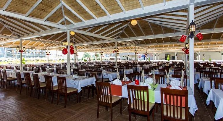 Доброго времени суток, уважаемые туристы! Прошла неделя как мы вернулись из отпуска и пока в памяти ещё все более-менее свежо, постараюсь и я припомнить как все было, начну по порядку. Заселение - приехали в отель до обеда, разумеется, о заселении после 14-00 все знают и мы уже приготовили денежки для заселения пораньше и выбора красивого вида из окна. Заселили на 4 этаже, предпоследнем по факту. Номер неплохой, все исправно, вид из окна на бассейн с горками, по ночам было слышно дискотеку в Зен зе Инн. Еда в ресторане отеля - очень приличное питание, большой выбор мяса, овощи тушеные и вареные, главное все действительно вкусно! Каждый вечер был арбуз, наблюдала в ресторане нектарин, яблоки, много разнообразной зелени, мята (любителям привезти вкусненькое из дюти фри на заметку:). Дети тоже голодными не останутся, с утра блинчики, в обед супы и паста, сосиски, картофель вареный и запечённый - нам было чем кормить 6-летнюю принцессу. Этажом выше над главным рестораном есть ещё 4 или 5 маленьких - нас выручило, когда мы опоздали на обед, так же оттуда с террасы вид на анимацию вечером, да и вообще посидеть вечером выпить поболтать как одно из мест в пределах отеля. Так же обедали в ресторанах на пляже, их там четыре - голодными не останетесь, для разнообразия сходите на обед в конец пляжа в бар чилаут, это единственное место на пляже с алкоголем кроме пива. Раз уж речь зашла о пляже - добраться можно трансфером от отеля или же пешком, ходьбы 5-7 минут. Заход в море через полосу гальки, немного не комфортно, в остальном с пляжем все хорошо - много лежаков, матрасы по щелчку приносит мальчик, тут же вытирает, все цивилизованно. Анимация в отеле скучновата - советую вечером съездить из отеля сюда же в аквапарк и сходить к ним в амфитеатр, повеселее и активнее того, что в отеле. Детская анимация - мы попадали только в ты что на пляже: ненавязчиво, все в пределах помещения, сидят рисуют или при выходе играют во что -то, во время наших посещений детей дальше пределов кидс клаба не выводили. Немного хромает уборка номера, это минус. Зато мы потеряли наши пляжные полотенца и нам без всяких проблем и доплат дали другие, это порадовало - минус неприятные эмоции и материальные затраты, что часто бывает в других отелях. В целом отель хороший, свеженький, отдыхающие почти одни турки и европейцы. В общем - мы были в хорошей компании и приехали с позитивом - отпуск удался, и очень хорошо, что сервис и обстановка в отеле поспособствовали к получению только приятных эмоций во время отдыха! Всем огромный привет из Киева 💋💋💋