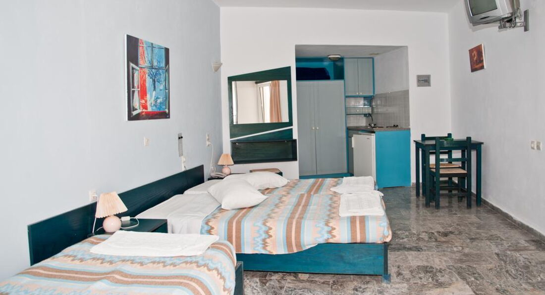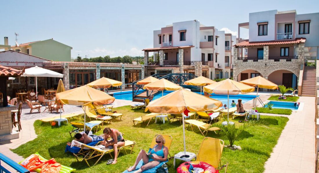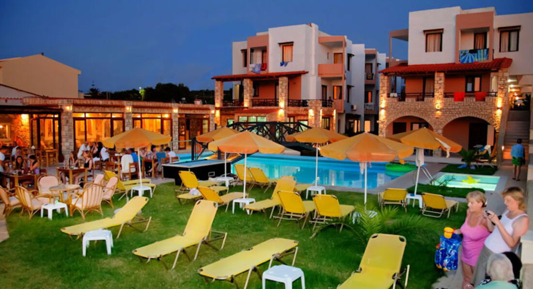 Затишний сімейний апарт-готель для бюджетного відпочинку розташований на березі мальовничого села Сфакакі. Відвідвачі готелю можуть насолоджуватися туром по визначним місцям міста або романтичною прогулянкою венеціанськими вуличками, а також відвідуванням магазинів і ресторанів на будь-який смак.