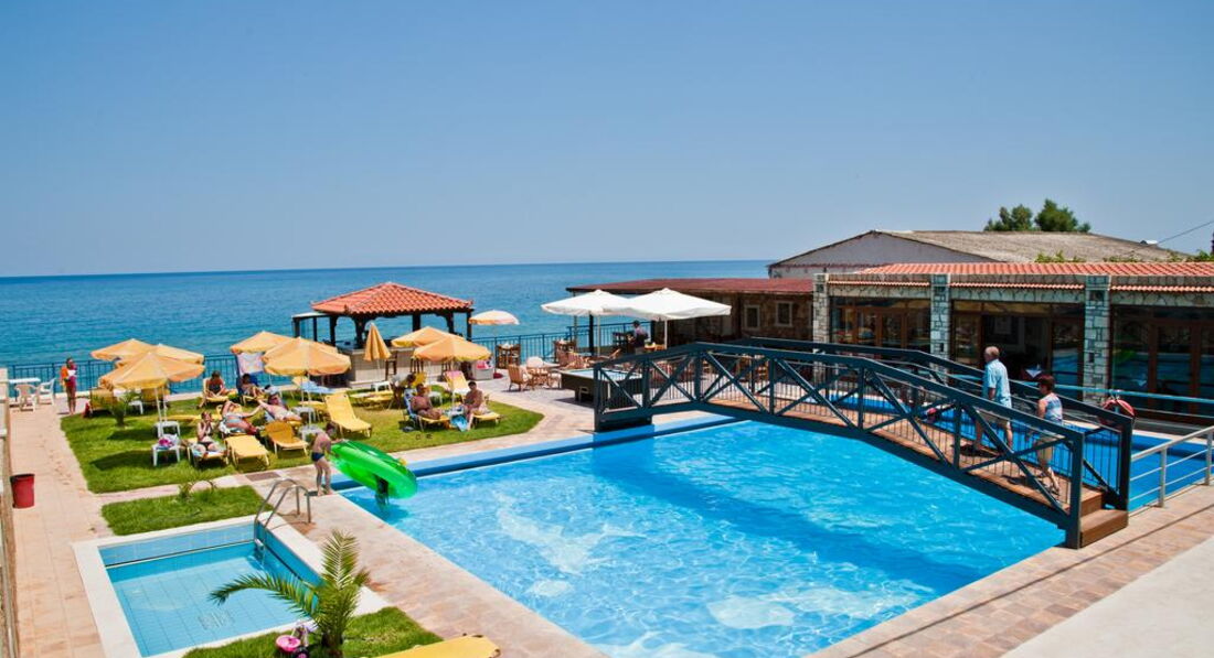 Територія та послуги: wi-fi: платно tv-room інтернет кафе паркування: безкоштовно пральня: платно хімчистка: платно екскурсійні програми Розваги та спорт: відкритий басейн більярд водні види спорту настільні ігри піші прогулянки Для дітей: басейн дитяче ліжко дитячі стільці в ресторані Живлення: ресторан бар Про ресторан: центральний ресторан: континентальний сніданок грецька таверна: вечеря по фіксованому меню Про бар: лондж-бар бар на пляжі Пляж: піщаний пляж вхід у море: піщаний муніципальний пляж парасольки: платно шезлонги: платно