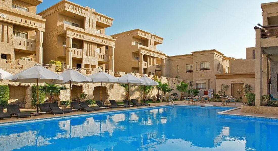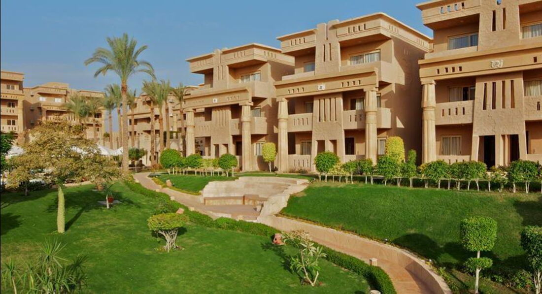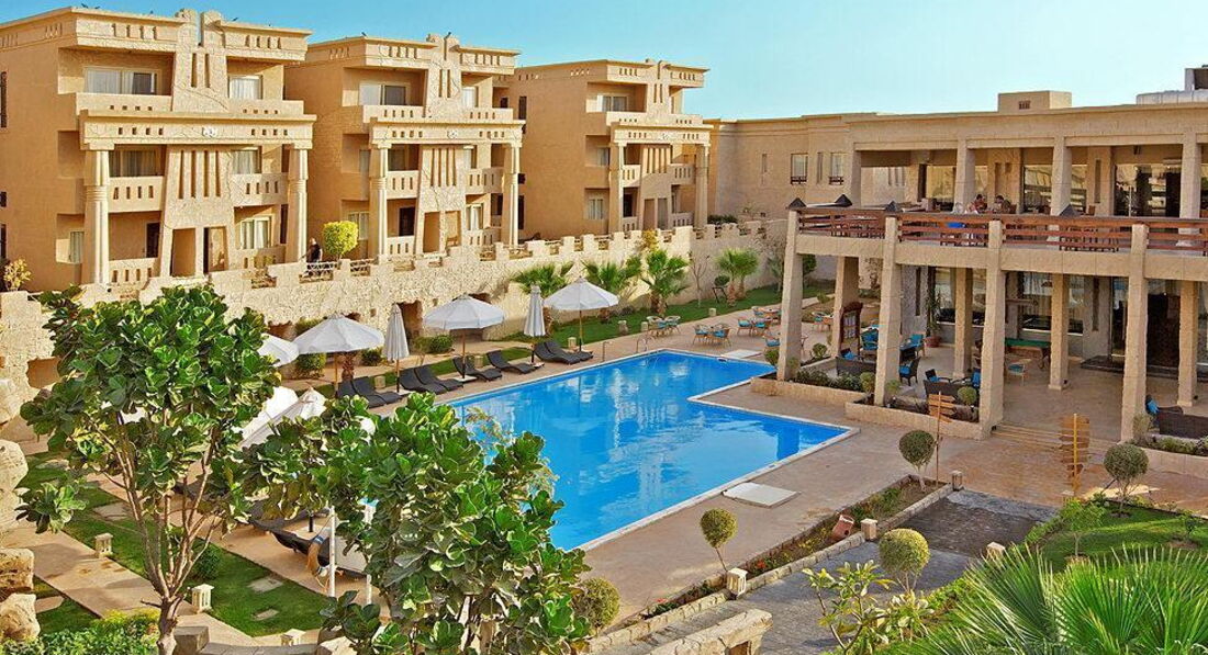 Готель у стилі «фараонік» складається з основної 2-поверхової будівлі (тільки ресепшн) та комплексу 3-поверхових корпусів.