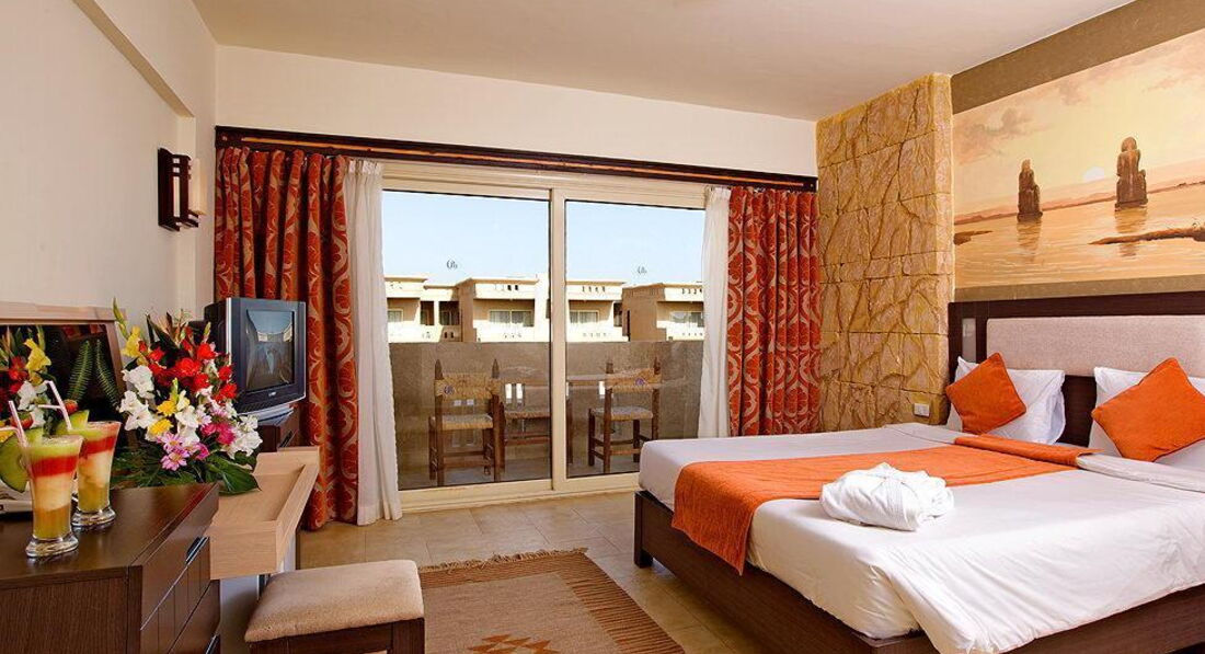 Всем доброго времени суток. В солнечном Египте далеко не первый раз по этому есть с чем сравнивать. По приезду в отель дали 10$ заселили быстро, в номере все работало кроме мебели, была в ужасном состоянии и напоминала карточный домик) если выдвигаешь один ящик рушится вся тумба ! Да по приезду выдали 2 бутылки воды которые нужно было растянуть на 7 ночей и 8 дней ! но об этом сразу не предупредили !!! Пошли на ужин, зашли в ресторан (ну как ресторан !)) в некоторых Российских столовках по приличней будет) питание ужасное ! из очень ограниченного разнообразия, кушать можно 3-4 блюда и то не всегда. Основная еда с утра яичница, в обед суп и макароны (пастой это не назвать) а вечером на ужин как мне показалось то что не доели на обед + рыба или мясо которые тоже не факт что окажутся шедеврами кулинарного искусства. За пляжными полотенцами и шезлонгами у бассейна постоянно нужно охотится. У нас в этом было преимущество наш балкон (он же смотровая площадка) выходил на бассейн с него и велось наблюдение за наличием мест и полотенец у бассейна. Алкоголь ну и в принципе всё остальное разливают в 100 граммовые пластиковые стаканчики получив такой стаканчик чувствуешь себя немного бомжиком. Да и по одному стаканчику в руки ! в редких случаях по 2. Про море, ура ! если вы попали на микроавтобус который туда едет, если нет то по жаре 30 минут пешком. А там всего метров 200 до глубины. Рядом с Российским флагом есть отличное место с кораллами где можно посмотреть разнообразие местных рыбок. Последний день - ключи от номера и браслетики нужно сдать в 12:00, обедом еще накормят а дальше как хотите ! у нас вылет был поздно вечером и если бы не не друзья с которыми познакомились в отеле так бы и сидели до 20:00 без еды и воды. Не смотря на все ужасы отеля в нем отдыхает много весёлых и позитивных людей. Всем с кем познакомились большой привет !!! Саша и Вера.