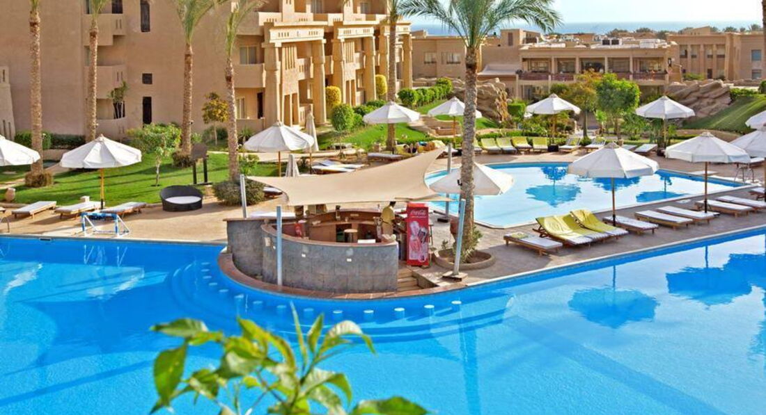 Всем здравтвуйте случилось так что наш с женой отдых проходил в данном отеле! В Египте были в первый раз и хотим поехать еще! Но об отеле, в отеле мы были примерно в 10 утра на рисепшене просидели 3 часа прежде чем нас заселили в комнату, уставшие после перелета с желанием поскорее принять душ! Багаж принесли примерно еще через пол часа, и тут сотрудник отеля начал просить чаявые, мы дали ему доллар на что он отреагировал как будто ему ничего не дали и попросил еще доллар, оставаясь в нашем номере после того как мы вручили ему еще одну бумажку он покинул нас наконецто оставив нас вдвоем! Сам номер с пошарпаной мебелью сейф в номере не работал толком до самого нашего отъезда, хотя я не один раз просил чтобы специалист пришел и посмотрел , что с ним, так что пришлось мучаться открывая его весь отдых! В комнате убирали первые два дня затем началось самое интересное, уходя с комнаты мы вешали табличку "убрать в комнате", но она почему то постоянно оказывалась на полу, в номере не то что не убирали элементарно у нас закончилась туалетная бумага! Когда я обратился на рисепшен попросив жалобную книгу они начали делать вид что не понимают о чем я говорю, хотя за день до этого они прилично разговаривали по русски! Ну эта проблема была решена когда у меня уже не выдержали нервы и я просто не начал кричать на них, только тогда нам принесли новый рулон туалетной бумаги!) Территория отеля грязная по всюду валяются пластиковые стаканчики и окурки а там ходят дети!!!!!!!! Бармены не приветливые иногда даже не хочется подходить к ним чтобы выпить холодный стаканчик пива, покупал за территорией отеля! Пляжа у отеля своего нет приходилось идти пешком километра 2-3 до общественного, многие добирались на автобусе! Так что в этот отель не нагой,а вот сам Египет надеюсь посетить еще не раз!