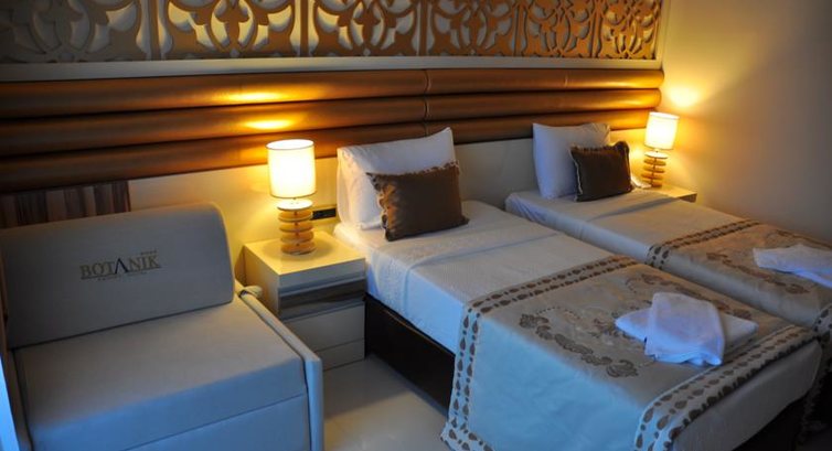 Приехали мы в 1 ночи, вместе с нами на ресепшн приехала пара из Смоленска (муж с женой) и на стойке турецкий мужчина по имени Охран (может быть и там другое имя) сказал, что номеров в отеле нет, просят переночевать в отеле Ботаник Мэджик, который минут 10 ходьбы от самого Ботаника, старый опшарпанный отель. Мы отказались, скандалили с ними около часа. Потом он вызвал какого-то турка, тоже нас пытался заселить в тот отель, мы отказались. В итоге они сказали что через 2 часа освобождаются 2 номер, ждите. В итоге в 3 ночи где-то вышли люди из номеров и минут через 30 нам дали карточки от номеров на -1 этаже: 109,110. Мы спустились и честно говоря я просто ужаснулась. Такой грязи я нигде не видела. Были поменяны только постельное белье, в туалетной комнате везде волосы, грязь, унитаз вообще черный, мои дети отказались даже в туалет заходить. Телик был включенный, никто не мог выключить, пришел охранник вообще его из розетки вытащил, розетки кстати все выворочены. А в номере 109 ужасно воняло канализацией. Мы отказались, пришли обратно и попросили нормальный номер, в такой свинарник мы заселяться не будем. Вообщем после всех наших мытарств - намдали номер в 10 часов на 3 этаже - 317, а нашим попутчикам из Смоленска на 4 - 423. Мои дети спали на диван в холле. Я сколько раз была в турции, но такого хамского отношения не видела ни разу. Причем около отеля горело информационное лед табло - FREE ROOM. Как потом мы выяснили - эта такая практика зарабатывания денег. Тот отель дешевле гораздо, ниже уровнем, очень далеко от пляжа, минут 30 идти пешком, их возил трансфер, плюс сам отель требует ремонта. Мы потом познакомились на пляже с отдыхающими из того отеля Мэджик и там поголовно все купили путевку в Ботаник обычный, а их туда заселили под предлогом переселим на след. день, и так они и остались в том отеле. Это просто безобразие. Ни в коем случае не соглашайтесь на заселение в отель ниже уровнем.
