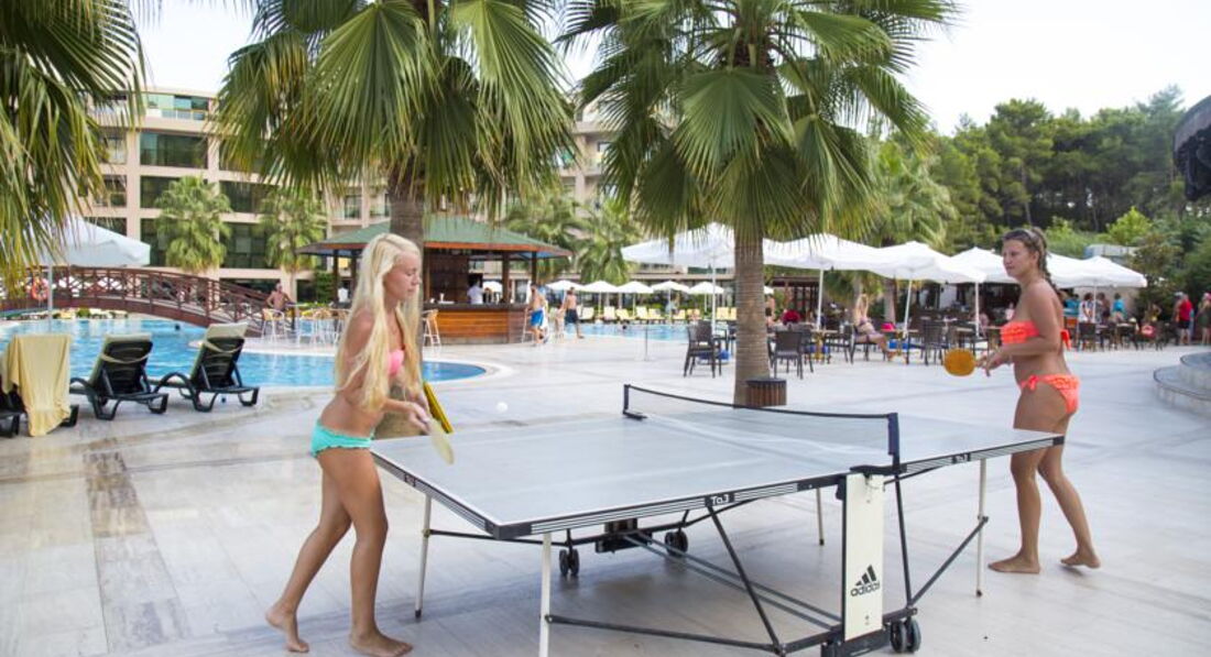 Отдыхали с 19 по 26 июня, 3 взрослых + ребенок (5 лет), при бронировании был указан номер семейный с размещением 3+1, но по сути он очень маленький: одна двухспальная кровать и раскладное кресло и одно спальное место обещали еще добавить. Девушка на ресепшн предложила посмотреть номер получше с доплатой 7 дол./сутки (он намного больше, с двумя кроватями и креслом, с балконом и большим панорамным окном), но между собой со вторым сотрудником ресепшена они не успели договориться, пока тот ходил за ключами :)) и он нам в номере назвал цену 10 дол./сутки, потом они еще спорили между собой и в итоге мы сказали либо по 7 за сутки, либо готовьте еще одно спальное место в бронированном номере. Отель еще новый и не сильно истрепанный, красивая и ухоженная территория, хотя следы многих отдыхающих уже заметны (пятна на ковролине и мягкой мебели, отваливающийся держатель в душе, треснутая крышка унитаза, шатающаяся ножка в настольной лампе - это я про номер, в котором мы жили). wi-fi в номере очень слабый , у бассейна намного быстрее. До пляжа неспешным шагом 7 минут (с ребенком), пляж мелкая галька, чистый, лежаков всегда хватало, так как мы приходили к морю к 8 утра. На пляже можно перекусить фаст-фудом или лепешками (типа лаваш с сыром/картошкой), но за ними нужно было постоять в очереди. Пляжные полотенца выдавали по карточкам, один раз попалось конкретно дырявое (сразу не проверили, так как они стопочкой сложены). По питанию все нормально, но без особых изысков (если сравнивать с пятизвездочными отелями), из фруктов мы застали арбузы, яблоки, лимоны, грейпфруты и дыни (персиков, клубники или черешни не было, а по тупи на пляж - было по 2-3 дол.) . Из мяса была индейка, курица, утка (на гриле - очень вкусная), телятина, баранина и рыба. Из гарниров рис, булгур, картофельное пюре, спагетти, макароны, картошка-фри/ запеченная,всякие запеканки из овощей. На первое были супы ( чечевичный, овощной, грибной и рыбный), плюс всякие салаты и овощи (огурцы, помидоры, капуста, морковь, брокколи, баклажаны, перец). Из напитков все как обычно - вино, пиво,коктейли (все разведенные, так что любителям покрепче - придется роскошелиться), соки из автоматов (не фреши), чай, кофе, молоко.В общем голодными мы не ходили, правда немного напрягали очереди (самых голодных), но как только первая партия людей наедалась и освобождала столики, становилось меньше суеты и можно спокойно было сесть и поесть. Один из неприятных минусов, это плохо вымытая посуда, не раз приходилось менять стаканы, ложки, вилки, ножи на чистые. Анимация по вечерам на 3. После мини-диско, для взрослых были конкурсы как раньше на свадьбах (откуси яблоко и передай другому, поменяйся одеждой), пару раз аниматоры устраивали танцевальное и фаер-шоу, вот это было действительно классно! Дискотеки как таковой и не было, вернее музыку не вырубали до 24, но никто не танцевал ( и да, если номер в видом на бассейн, то музыку слышно очень). Про мини-клуб ничего не могу сказать, наш ребенок не вылазил с моря или, когда оставались у бассейна, спускался с водных горок,ходил вечером на мини-диско. С 16 до 17 у бассейна давали мороженое (идти за ним лучше с 16.30, очередей уже почти нет, а мороженое еще есть). В общем, несмотря на недочеты мы довольны, мы ехали к морю, а не искать минусы, тем более все познается в сравнении, но в следующий раз, наверное для разнообразия выберем но