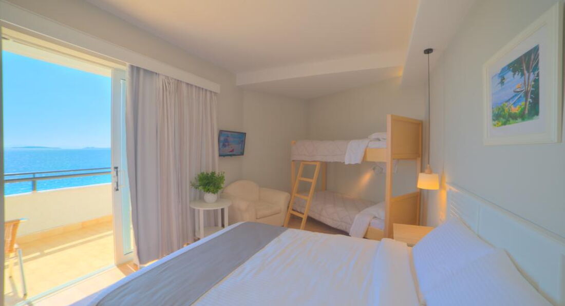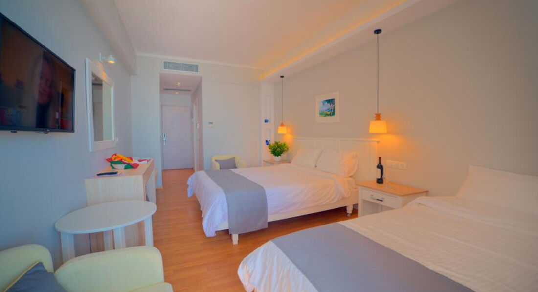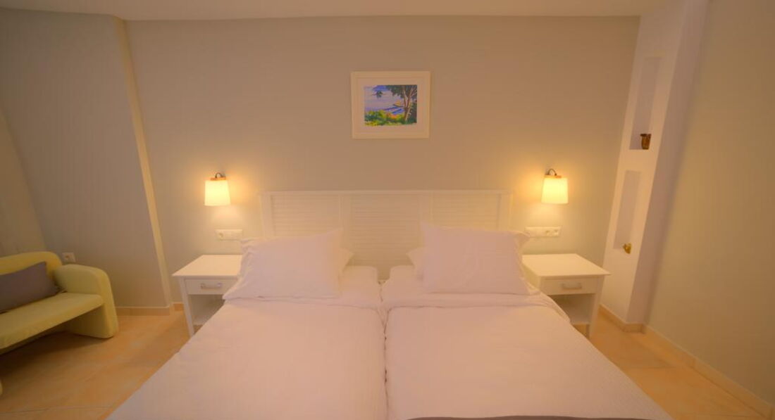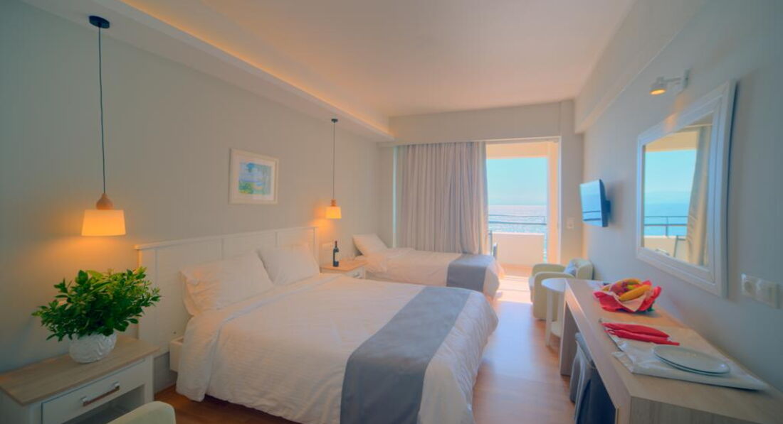 Типи номерів: standard room sea view/land view (з видом на море або на околиці, осн. ліжко - двоспальне (2 односпальних за запитом), дод. - односпальне, макс. 3 чол., 24 м2).У номері: сейф: у номері, платно (механічний) зміна білизни: 6 разів на тиждень room service: платно (за запитом) банні приналежності кондиціонер: індивідуальний зміна рушників: 6 разів на тиждень прибирання номера: щоденно телефон підлога: керамічна плитка (або паркет) радіо балкон або тераса фен: є ТБ: супутникове Інтернет: Wi-Fi ванна або душ міні холодильник