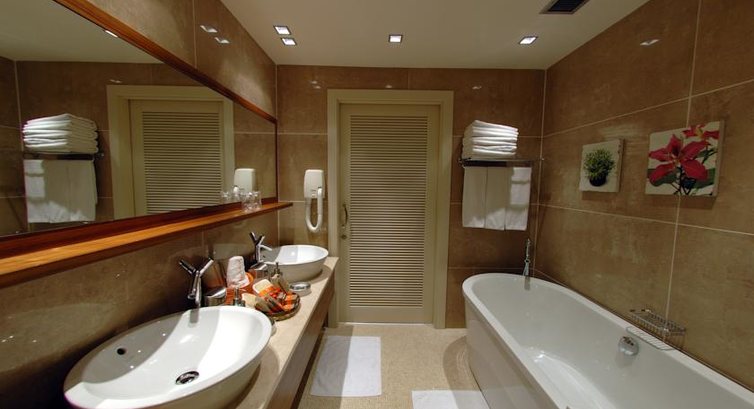 Номера в этом отеле стандартные, для двоих вполне хватает места, для троих тоже. А вот в четвером (2 взр+2 реб), пожалуй, тесновато. В номере всё очень прилично: мини-бар платный, но могу сказать, халявного мини-бара в большинстве отелей Турции сейчас нет. Бесплатно только вода - 2 бутылочки. Если Вам ее не ставят каждый день, проблем в воде в принципе нет. Ее полно на территории, в барах и ресторане. Ну или можно сказать об этом на ресепшене и проблема решена.