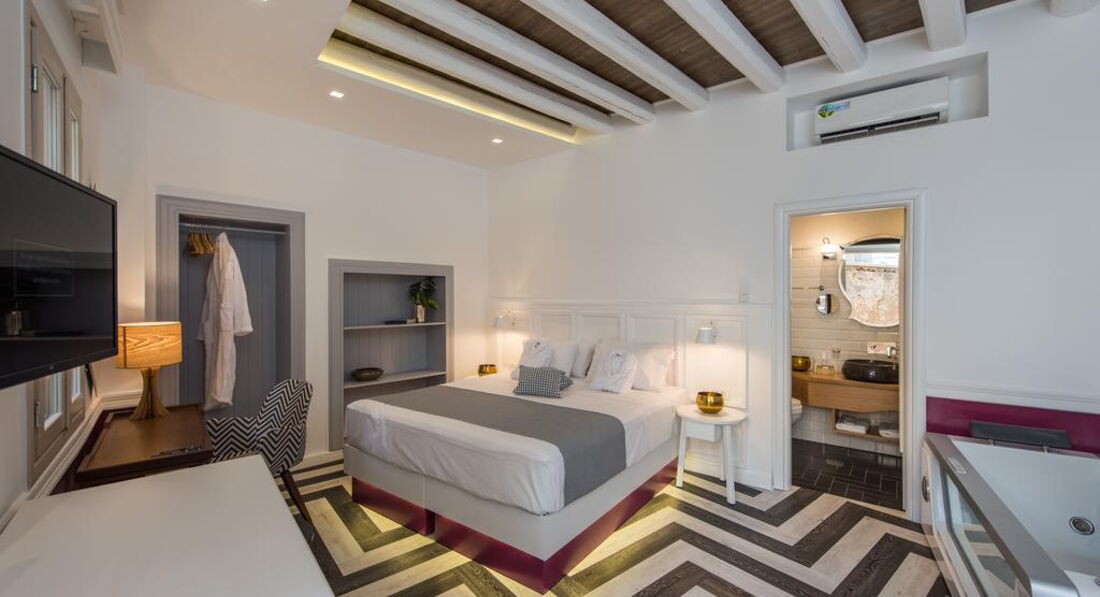 Номерний фонд готелю Elia Portou Due розмістився у будівлі традиційної критської будівлі. Примітно, що дизайн житлових кімнат продуманий таким чином, що не створюється дисонанс між внутрішнім оздобленням у сучасному стилі та екстер'єром. Розташування у популярному єврейському районі сподобається любителям піших прогулянок містом.