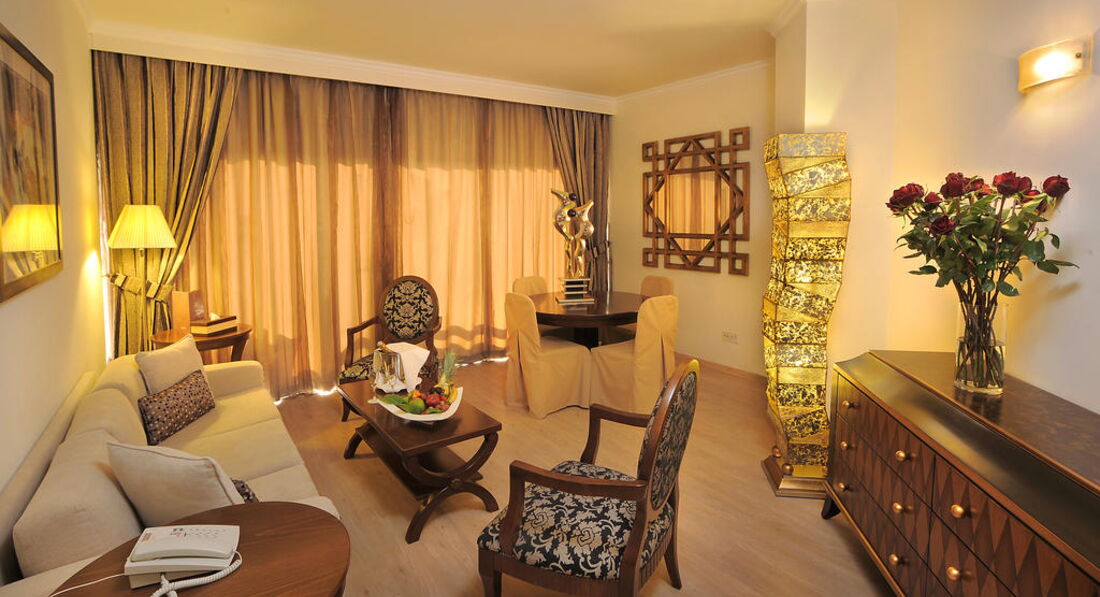 Junior Suites - повністю оновлені та покращені у лютому 2011, розміщують до 3 дорослих або 2 дорослих та 2 дітей; панорамний вид на море; за площею більше, ніж Superior Rooms; чудові елегантні меблі та декор вищої якості; є вітальня з мякими меблями; першокласне банне приладдя (високої якості банні халати, рушники, тапочки); індивідуально контрольована система охолодження та обігріву повітря; телевізор з плоским екраном 32” та супутниковими каналами; радіо; міні-бар; (Для всіх гостей після прибуття: 2 пляшки мінеральної води, 2 прохолодні напої та 2 пакети апельсинового соку - зверніть увагу, що ці пункти не поповнюватимуться), фен для волосся; індивідуальний балкон; безкоштовний набір для приготування чаю та кави, що поповнюється щодня; безкоштовно сейф у номері; безкоштовний Wi-Fi доступ в інтернет