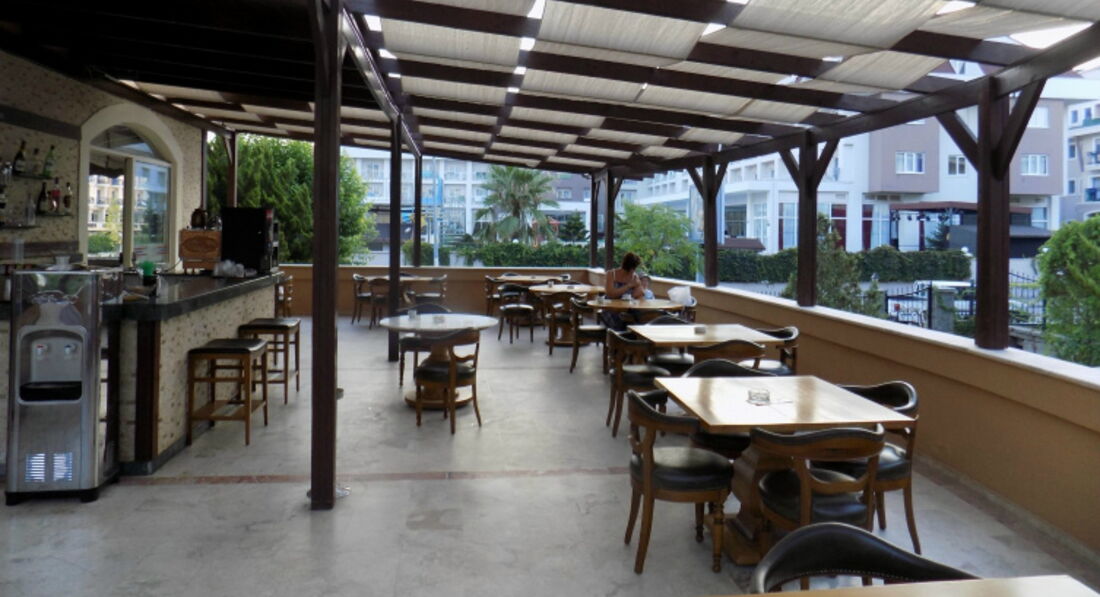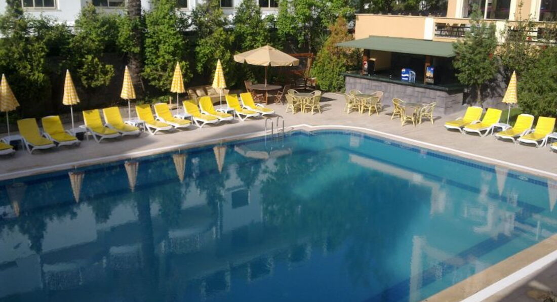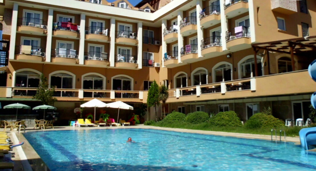Скажу сразу в Турции не первый раз, есть с чем сравнивать, были и в 4 и 5. Продавали нам этот отель как 4 звезды, на самом деле звезд в нем нет. Прилетели в 5 утра, номер дали сразу, т.к. отель был на половину пуст. Номер не очень большой нас было 2 взр1 реб. Туалет и душ чистые, но очень маленькие. Полотенца и постельное не меняли за неделю ни разу, положили 1$ убрали, не положили убрали на половину. Первый шок был на завтрак, завтракать нечем особенно детям, те кто едут с детьми будьте готовы. Обед и ужин вкусно, но нет выбора одно горячее и два гарнира и много салатов, десерты тоже 1 ,2 вида. Была дыня, арбуз, яблоки, апельсины. До моря 5 минут, лежаков свободных куча. Горку в бассейне включали когда попросишь, т.к. около него почти не было людей. Анимация!!! Две девушки лет по 18, не знаю зачем хозяин их вообще держит. Ничем не могут завлечь гостей, детская дискотека 10 минут, вот все на что они способны. Молодежи там было очень скучно. Мальчики официанты молодцы, всегда улыбаются, всегда во всем помогали и часов в 9 вечера приходили к бассейну и танцевали турецкие танцы!!! Молодцы!!! В общем отель не плохой, пляж близко, магазины, кафе тоже. Приятного всем отдыха!!!
