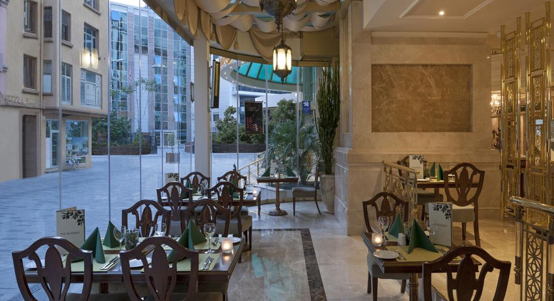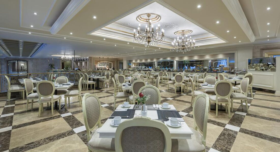 • елітний ресторан, де можна дегустувати вишукані аромати турецької та світової кухні, а також рідкісні італійського, іспанського та французького вина, зачаровує своїх гостей багатим меню та чудовим дизайном