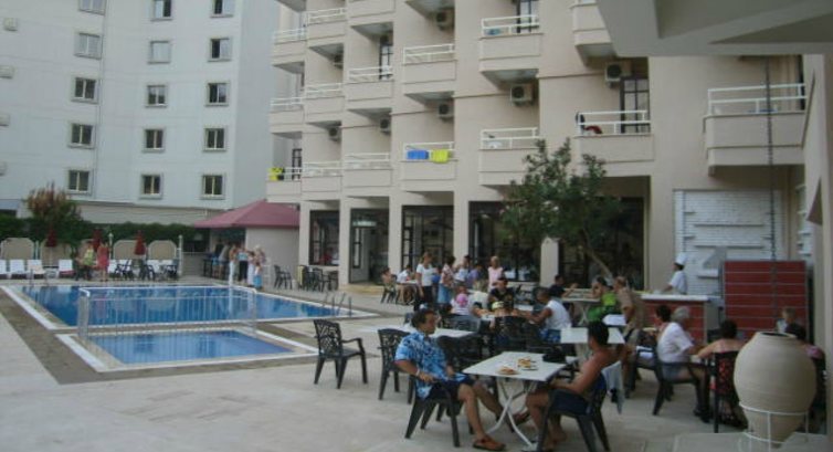 Отдыхала в этом отеле 2 недели в мае 2008 года.В Турции была первый раз ,приехала одна . Для первого раза мне понравилось почти все.От трёх звёзд что можно ожидать? конечно будет всё не так как в 5-ти *!,и еда не та,и территория,и обслуживание.,но все это ничего,но вот хозяин отеля это что-то.Домогался к одиноким девушкам в отеле ,ломился в номера,в мой тоже,преследовал на дискотеках и т.д.Пляж мне тоже понравился,но если немного в сторону идти.,там вода чистая и дно хорошее.