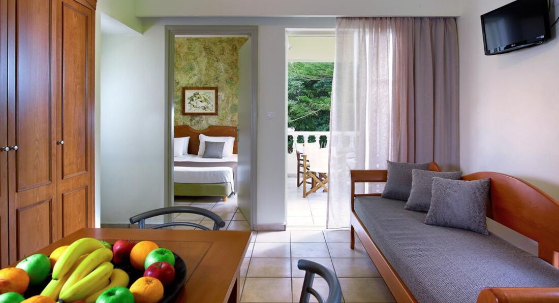 Elotis Апартаменти – вишукані номери, площею 38 кв. Апартаменти з верандою та видом на прекрасні сади, а також класичними інтер'єрами, що відрізняються витонченістю ліній, є ідеальним варіантом розміщення для 2-4 осіб. Одно- або дворівневі апартаменти включають 1 спальну кімнату з двома односпальними ліжками; салон з розкладним диваном та можливістю додаткового розміщення 1 гостя;