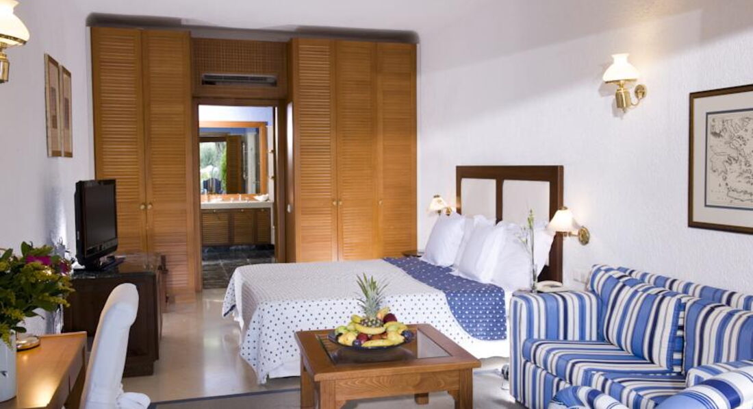 Номери декоровані в традиційному стилі критському, деякі з них з вбудованими ліжками:
