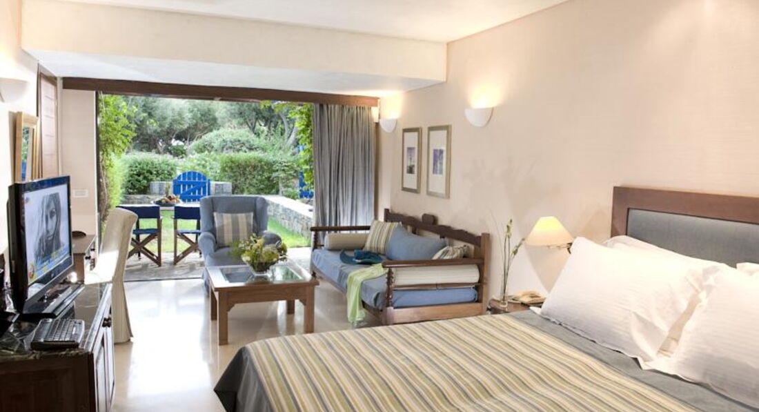 • One bedroom family suite garden view with shared pool (вихід до загального басейну, осн. ліжко – двоспальне (2 односпальні за запитом), додатковий – 2 диван-ліжка, макс. 2+2 чол., 38 м2),