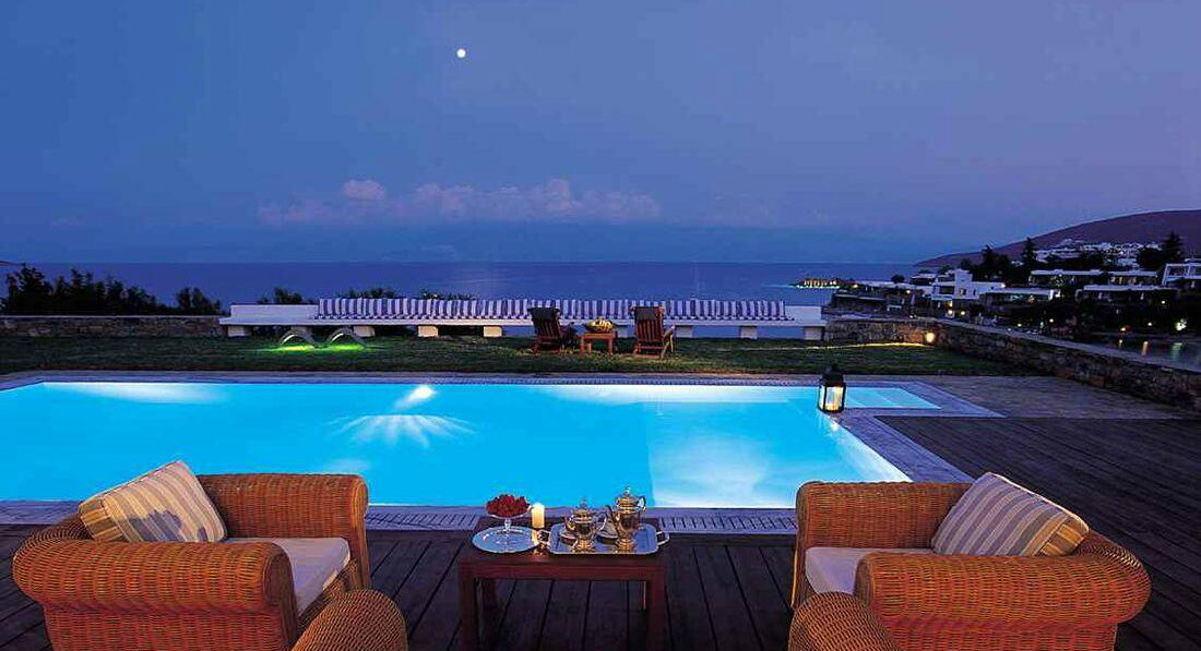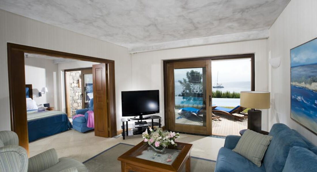 • Two Bedrooms Grand Suite with Private Heated Pool on Water's Edge (1 лінія від моря, 2 спальні, 2 вітальні, 2 ванни, сад, індивід. Басейн, макс.5, 135 м2),