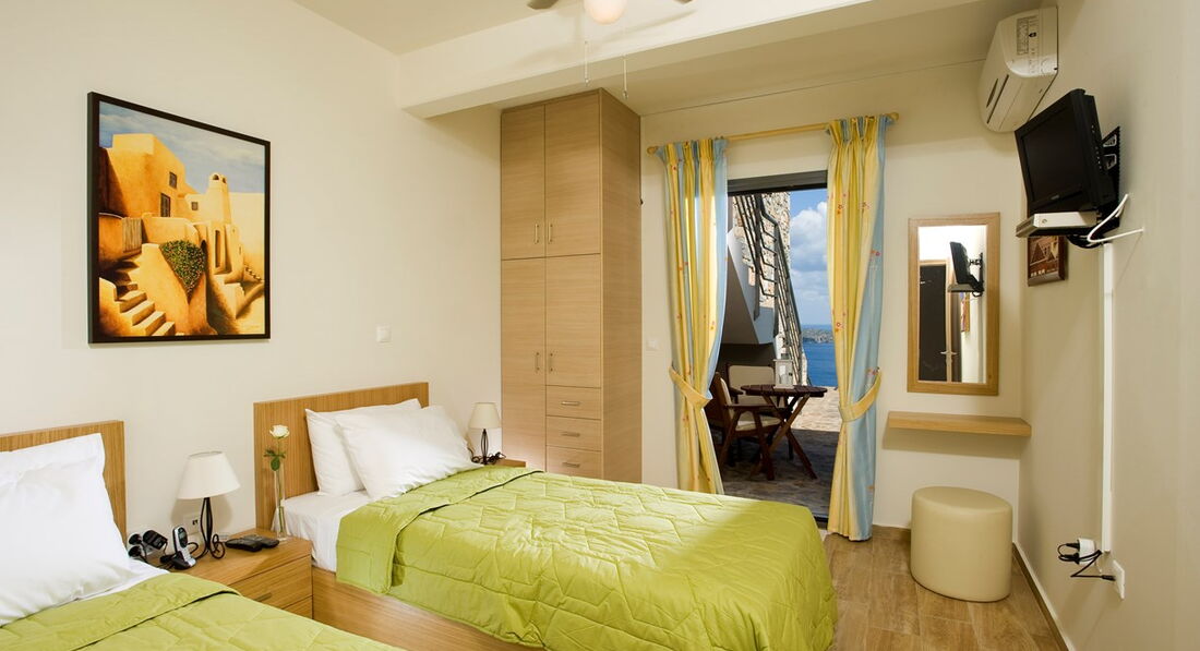 Територія та послуги: лікар: платно оплата за кредитними картками пральня: платно хімчистка: платно послуги батлера: платно вітальний напій (привітальний кошик з критським вином, свіжими фруктами та місцевими закусками після прибуття) прощальний подарунок під час від'їзду регіональна лікарня в межах 10 км з лікарями за кожною спеціальністю, плюс служба швидкої допомоги Розваги та спорт: басейн Для дітей: дитяче ліжко: безкоштовно дитячі стільці в ресторані няня: платно (за запитом) Живлення: RO - без живлення До оплати приймаються кредитні картки: american express, visa card, master card, dinero club