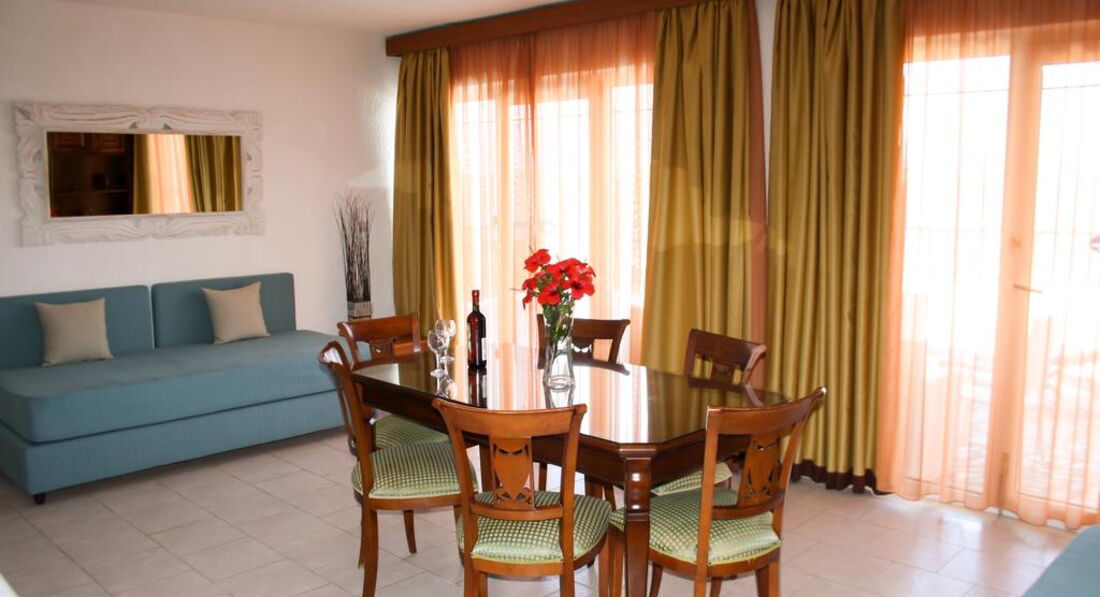 Apartment Sea View (30-40 кв.м, макс 4 дор): сімейні апартаменти з видом на море представлені спальнею та окремою вітальнею, ванною кімнатою.