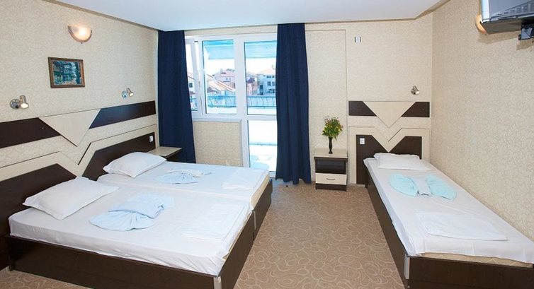 Отдыхал 10 дней в этом отеле по системе ALL. Фактически первая полоса 50м до моря. Отель уютный , чистый, расположен в 100 метрах от центральной торговой улицы"Македония". Вообще я считаю очень удобное расположение. Все рядом и в тихом месте( если не считать постоянно круглосуточно орущих чаек). Сам поселок Равда,небольшой и компактный,а улицы хорошо заасфальтированы.Номер был на 5 этаже и море в прямой видимости, прям пентхаус. Нареканий к отелю у меня не возникло пока жил в отеле. Прямой слив в пол в ванной не проблема. Такие сливы встречались и в других странах.Сланцы снимают все вопросы.Главный критерий по еде выполнен был полностью. Еда была проварена, прожарена, свежая.Питание соответствует 2* и стол был не шведский.что то брали сами, что то накладывали они сами.Ограничений порций по запросу не было.Белье было чистое.Только полотенца менялись, то попадалось чистое,то с пятном. Ресепшн был всегда на месте.(ночью охрана) Единственный минус была погода. Прохладная и не стабильная. А так ничего плохого об отеле не вспомнилось.