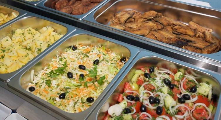Обед: напоминает заводскую столовую эпохи совка. Суп из чечевицы, котлеты, шницеля. Гарнир – картофель и рис. Все, кроме овощей и хлеба, накладывает работник кухни. Рис отвратительный, слипшийся как каша, или не умеют готовить, или используют самый дешевый. Котлеты нормальные, без хлеба. Один раз был гриль из куриного филе. Фрукты – недозрелые сливы, иногда виноград, который очень быстро заканчивается. Очень странно, ведь был сезон персиков, отличных болгарских персиков. Понимаю, что сливы дешевле, но лучше давать хорошие персики через день, чем плохие сливы ежедневно.