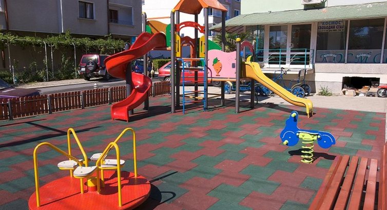 В отеле бассейна нет, детская площадка в 30 м, но принадлежит другому отелю.
