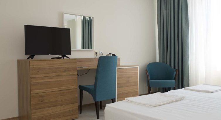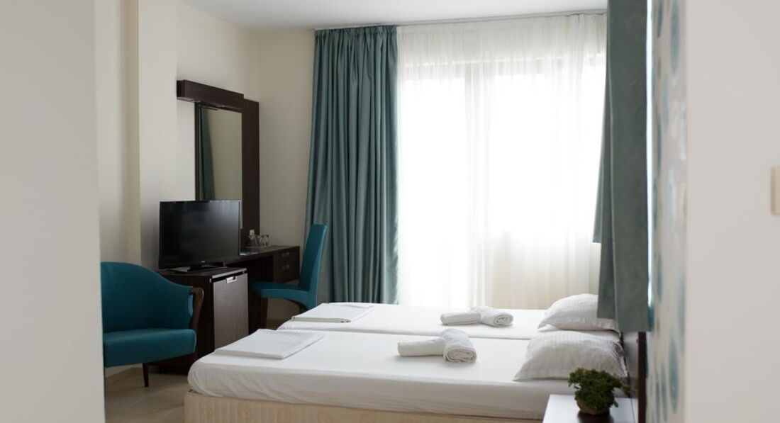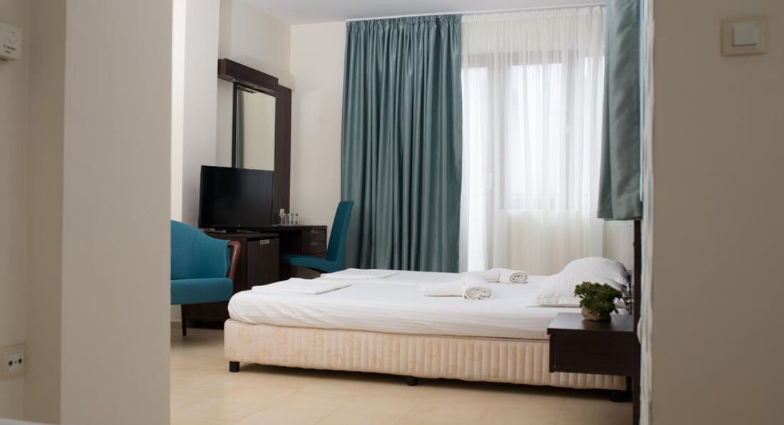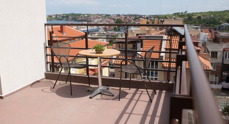 Отдыхали в Камее с ребенком 3,5 лет с 7 по 18 июля 2016 года, пока помню все детали, пишу отзыв. Отель понравился. Первая приятность была в том, что нас заселили раньше времени, постарались, мы приехали туда в районе 8-9 утра, как известно заселение в 14 ч дня, сходили на пару часов на пляж, вернулись обратно, уставшие с дороги все равно, посидели у бассейна и тут - ура - приносят нам ключи от нашего номера! номер хороший, на 2 этаже, немаленький (сравниваю с теми, где жила в 4ках в Турции и Египте), чистый, все аккуратно. Вторая приятность была в том, что ребенок в первый же день уронил ноутбук с тумбочки на кафель ион перестал включаться и - о чудо - обратилась за помощью на ресепшен - и они мне его реанимировали)) Хозяева - видимо, семейная пара - очень приветливые, говорят по-русски, общались. Администратор - молодой парень - по-русски не говорил, но готов был помочь (общались на англ как получалось). Уборка в номере каждый день, горничная тоже приветливая и улыбчивая, кроме воскресений - в эти дни только мусор из ведра выносили. Вид с балкона тоже понравился - были видны колоритные крыши, море, бассейны. Кондиционер мы не включали, телик работал, фен и утюг - брать на рецепции по необходимости и туда же возвращать - утюг ,кстати, администратор принес мне сам, по просьбе. Завтраки с 8 до 10 в кафе при отеле - тоже все чисто, аккуратно, белоснежная посуда, приветливое отношение. На завтрак - чай, кофе, сок, местные сыры, мясно-колбасная нарезка, фрукты были арбуз, абрикосы, персики, груши - по очереди), помидоры, огурцы, ребенок поглощал хлопья с молоком, джем, были сосиски, яичница, блины, гренки, нам вполне достаточно было и вкусно. Мы завтракали в 8-самом начале 9го - наблюдали как хозяин чистил бассейн. Вайфай бесплатный и работал вполне нормально. Понравилось, что отель находится в городе и сам Созополь тоже понравился - это не поселок с 1 улицей - а вполне приличный курортный городок - было где погулять)) - порт, новый и старый город с развалинами старых крепостных стен и церквей, уйма кафешек, магазинчиков, хороший парк. Отель расположен почти в центре, на одинаковом расстоянии до обоих городских пляжей - поэтому до обеда мы ходили на один пляж, вечером - на другой - в зависимости от планов)) В 2 шагах продуктовые магазинчики, фруктовая лавка, лавка с пляжными принадлежностями, торговцы все приветливые, здоровались и болтали)) От Бургаса находится недалеко, минут в 40 езды. Также мы ездили в соседний городок Поморие в аквапарк.