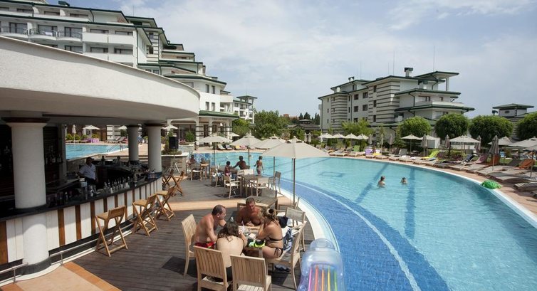 Находится отель в спокойном месте непосредственно у моря. Пляж песчаный. Мы продаем это отель уже третий год. Сама ездила туда 2 раза. Все туристы остаются довольны, многие едут повторно. По болгарским меркам - это хороший пятизвездочный отель. Основная особенность, что все номера выполнены в виде апартаментов с кухней, что очень удобно для семей с детьми. Номера разные от стандартных двухместных, до апартаментов на несколько комнат. Территория большая, есть детская площадка и работает детская анимация (бесплатно). Несколько бассейнов, в том числе 2 детских. На территории работает 2 ресторана и бары. Питание можно заказать за дополнительную плату заранее или прямо в отеле. В целом питание неплохое, но все блюда болгарской кухни. В номерах есть пляжные полотенца (бесплатно). Если Вы берете полотенце у бассейна дополнительно, а не из номера, то это стоит 2 лева (примерно 1 евро). Лежаки и зонтики у бассейнов бесплатные, платные только на пляже (6 левов, что примерно равно 3 евро). Можно также брать пляжные полотенца из номеров и пользоваться ими на пляже. В отеле есть отличный СПА-центр Taman Sari (также работают с сетью отелей Хилтон), предлагают большой выбор услуг и различные виды массажа. В отеле можно заказать экскурсии и взять на прокат автомобиль. Ближайший город Несебр - 3 км. От аэропорта Бургаса - 15 км. Цены ниже, чем на Солнечном берегу, так как сам поселок меньше. Но баров и ресторанов достаточно, много магазинчиков с сувенирами, есть рынок, где можно купить фрукты и овощи