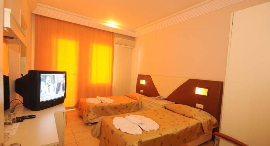 Не судите строго,мой первый отзыв.В отзыве буду кратка. На рецепшен встретили приветливо,сами заполнили бумаги и дали нам на подпись.Номер дали на 3 этаже .В номере убирали чисто,белье и принадлежности меняли согласно расписанию.В номере был сейф за отдельную плату,но мы не брали.Если не берете очень большие суммы-не имеет смысла..на этажах везде видео камеры., гостей и посторонних дальше рецепшен не пускают!.Кормили прилично.НО-.для тех кто мясоед,кто любит мясное, тому явно будет не достаточно!!На мой вкус зелени-было достаточно,из фруктов были-черешня,апельсины и арбуз!Для пляжа выдают полотенца на рецепшен,можно возвращать каждый вечер,а можно при выселении.У отеля свой пляж с лежаками и зонтиками...но бывало что после обеда не хватало зонтиков.Море прекрасное!! Пляж чистый!!Заход в море ровный песок с галькой.На пляже есть бар,где можно приобрести свежий выжатый сок,и в этом году они пробуют на заказ приготовить шашлык и пельмени!!От отеля до пляжа-2-3минуты. При отеле работает турецкая баня(хамам).Со второго этажа выход к бассейну,с лежаками,зонтиками и горкой,воду на горку,по расписанию.Общее впечатление хорошее(жаль ,что увольняется Адил,русско-говорящий молодой человек,вежливый и отзывчивый)
