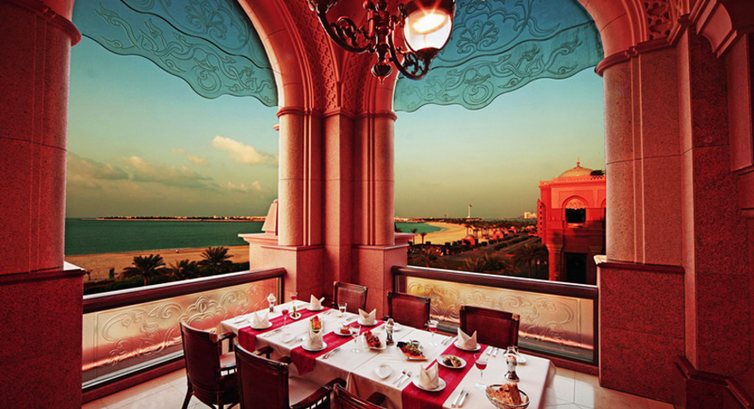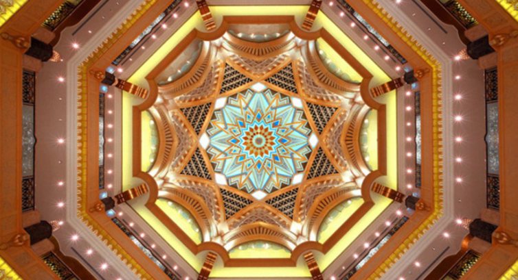 Роскошный отель; управляется сетью Kempinski и принадлежит правительству Абу Даби. Здание отеля – сказочной красоты дворец с традиционной арабской архитектурой. В центре дворцового комплекса возвышается огромный купол, выложенный цветной мозаикой, он окружен куполами поменьше, всего куполов – 114, и каждый из них украшен золотым шпилем. Цветовая гамма дворца воспроизводит многочисленные цветовые нюансы песков Аравийской пустыни, а вокруг дворца на огромной территории (100 га.) образовался удивительный зеленый оазис. Только 15% территории занято непосредственно отелем, остальная часть – ландшафт. Депозит в отеле составляет 300 $ в сутки за номер.